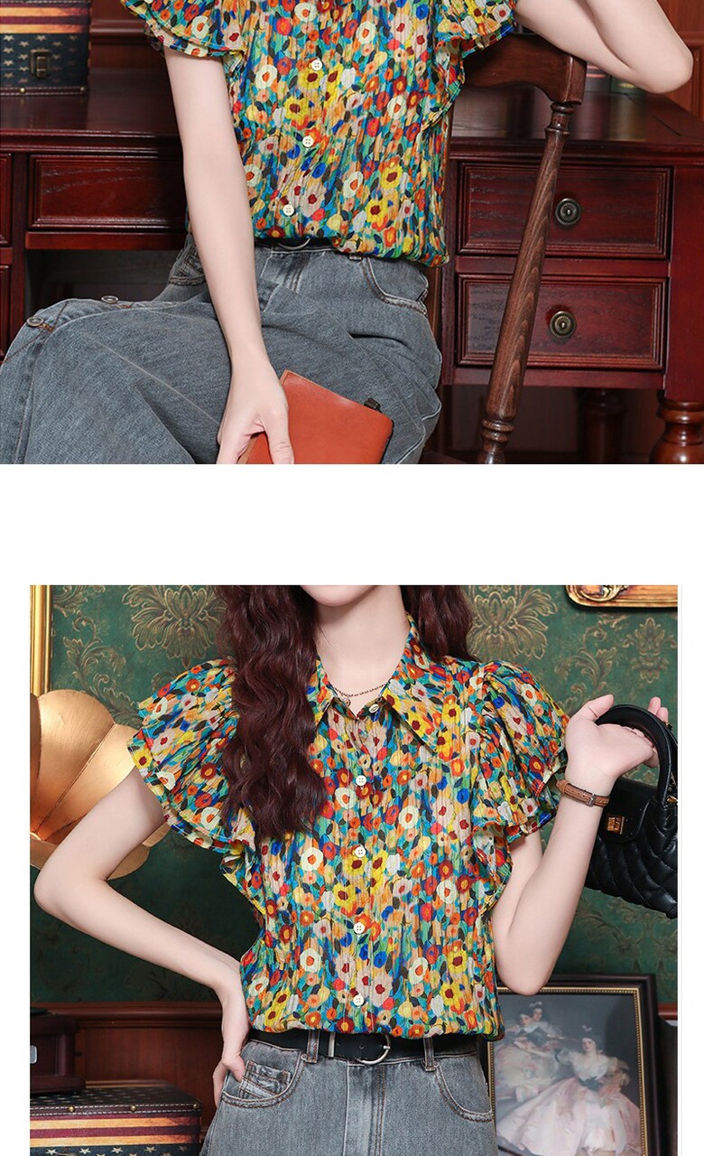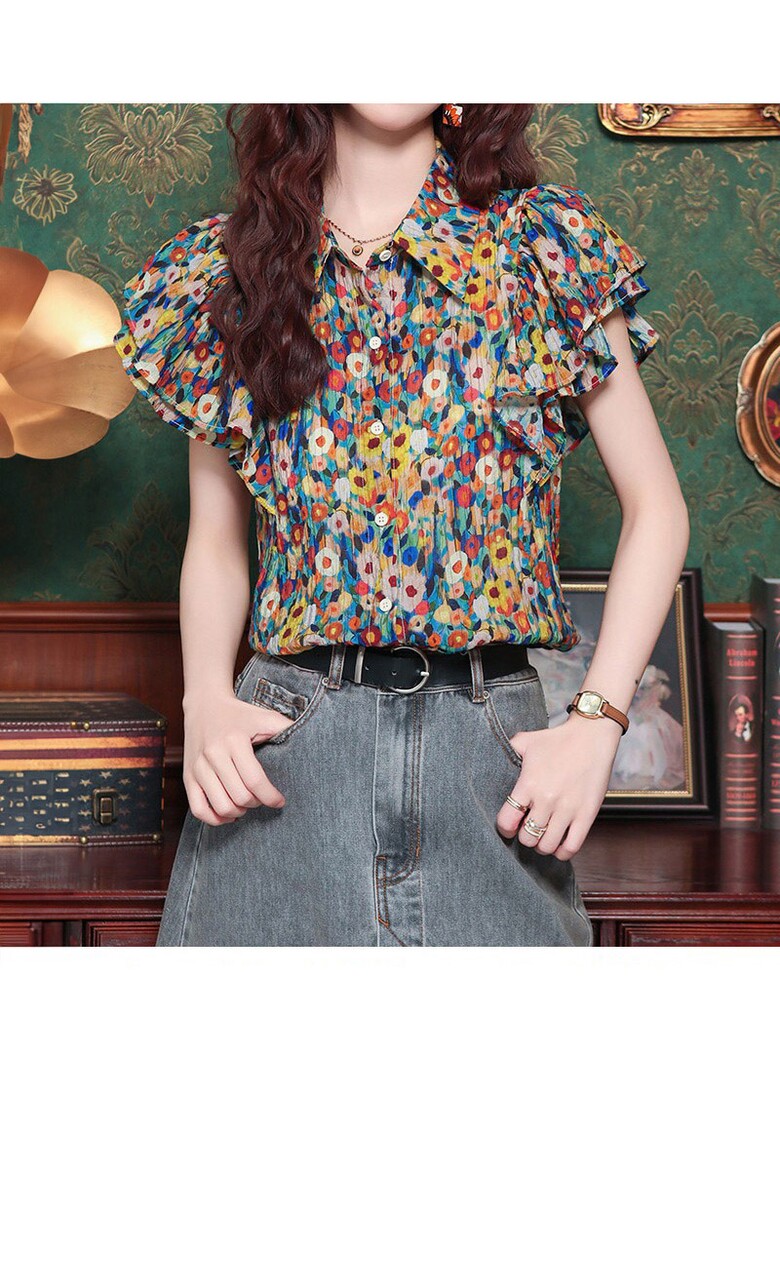 [~88까지]노트 플라워 숄더 프릴 카라 블라우스