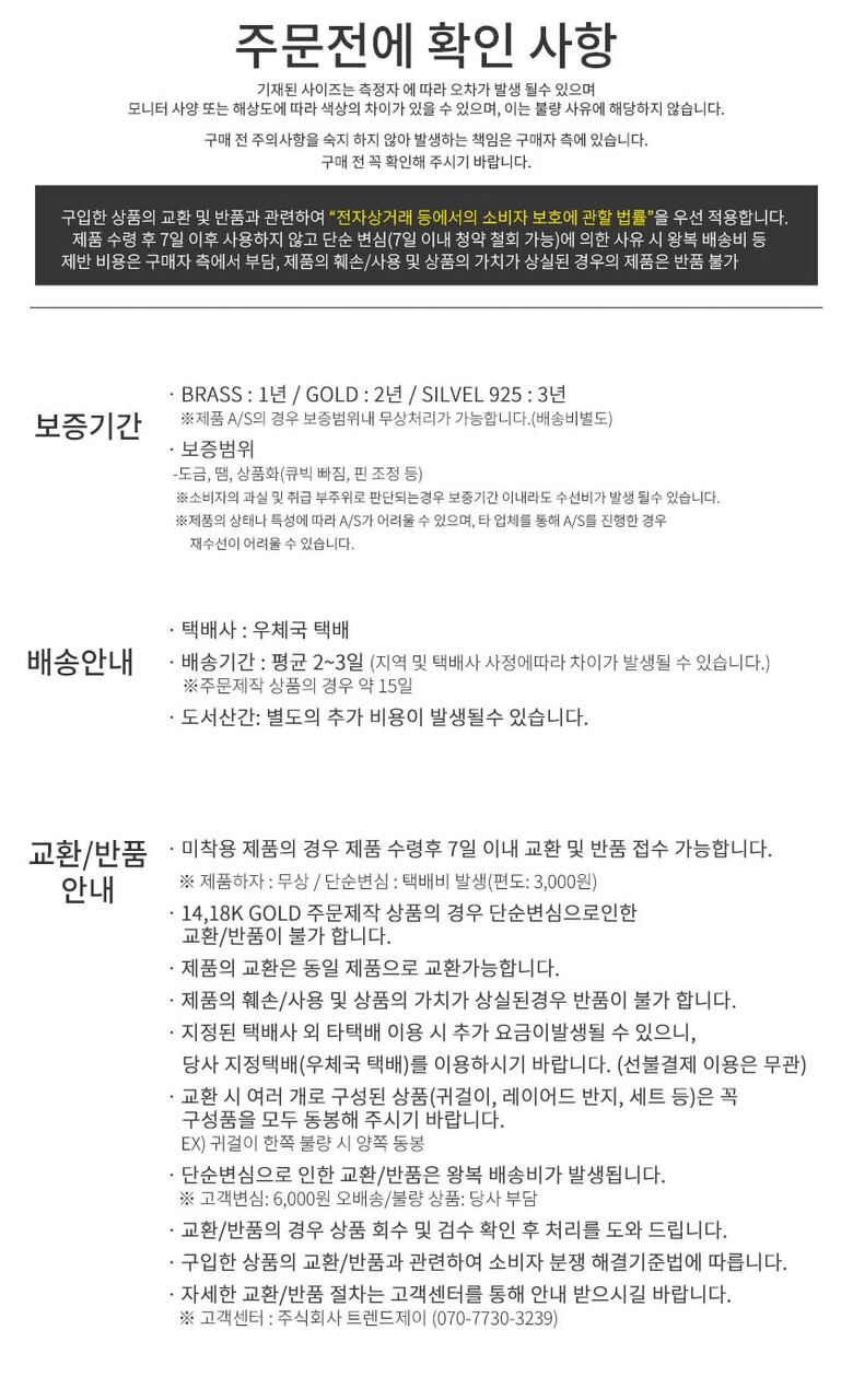 • 모든 규정은 전자상거래법에 의거하며, 택배사정으로 배송이 지연된 경우 재화를 공급받은 날로부터 7일 이내에 반품 가능합니다.
