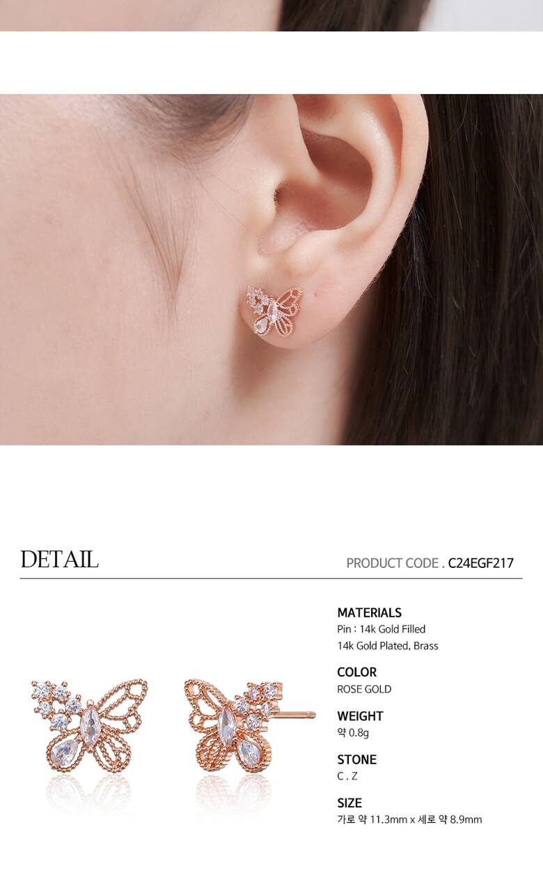 14K GF 나비 언발 큐빅포인트 귀걸이 C24EGF217