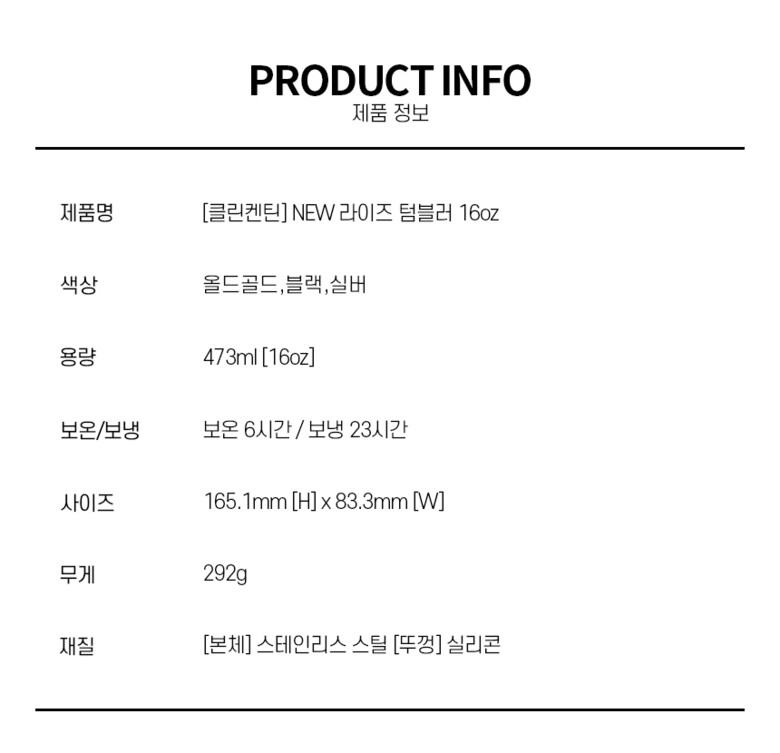 | 1. 품명 및 모델명 | [클린켄틴] 뉴라이즈 보온보냉 텀블러 473ml |