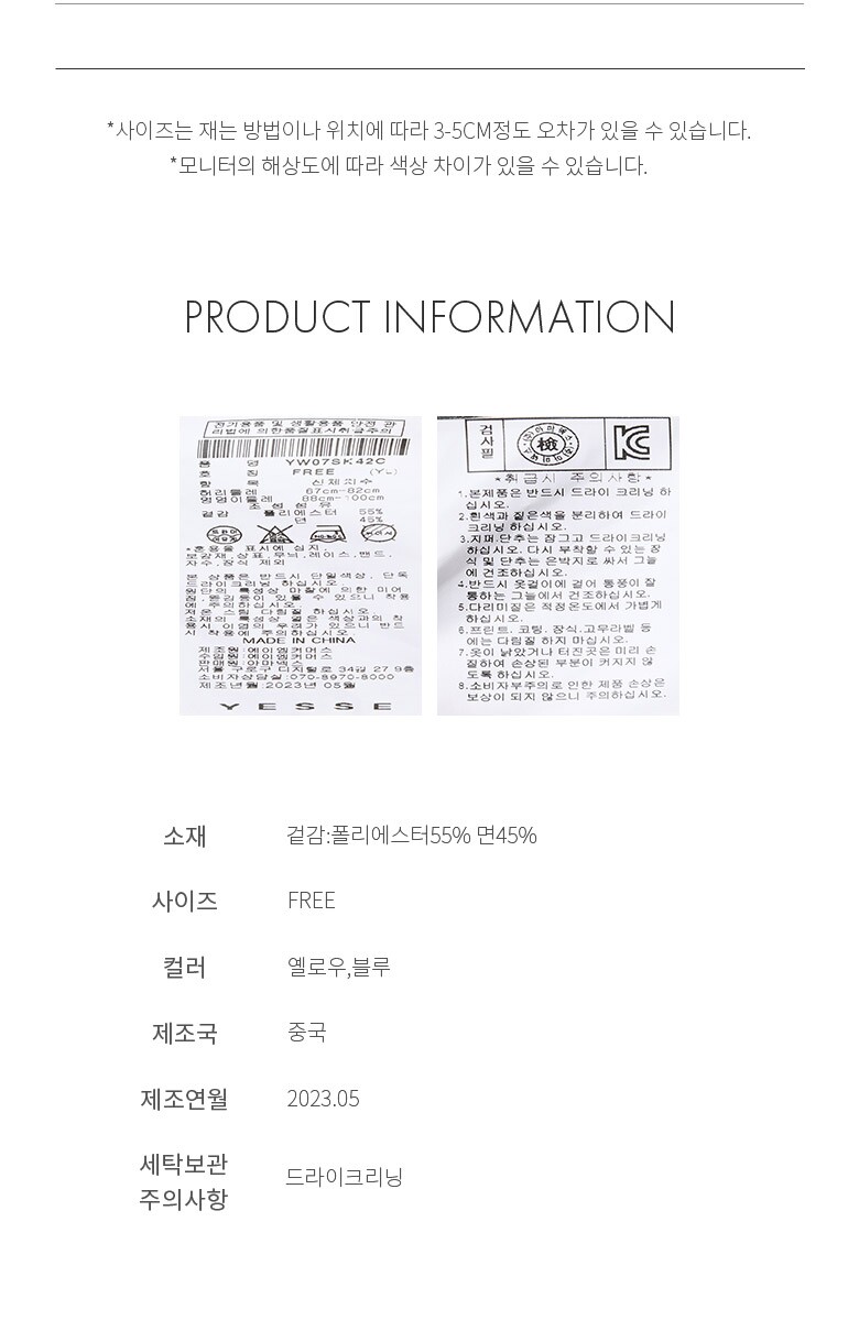 1. 제품 소재 (섬유의 조성 또는 혼용률을 백분율로 표시, 기능성인 경우 성적서 또는 허가서) | 상세페이지 참조 |