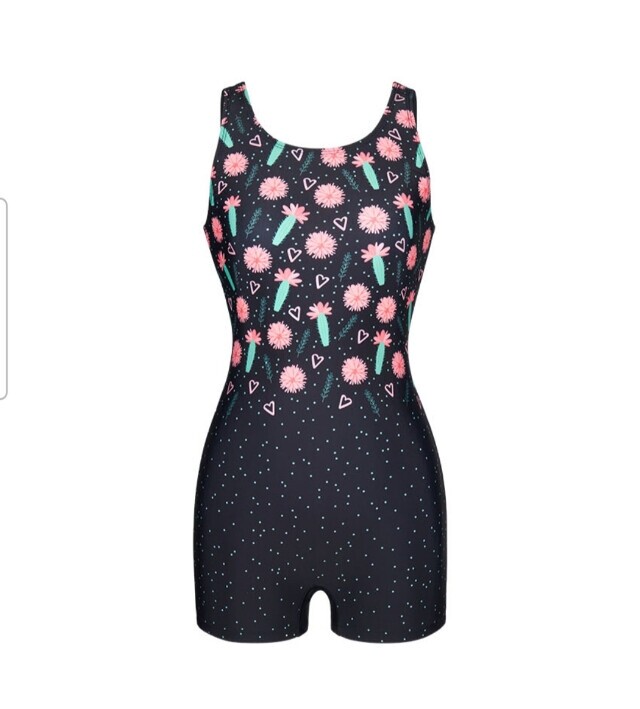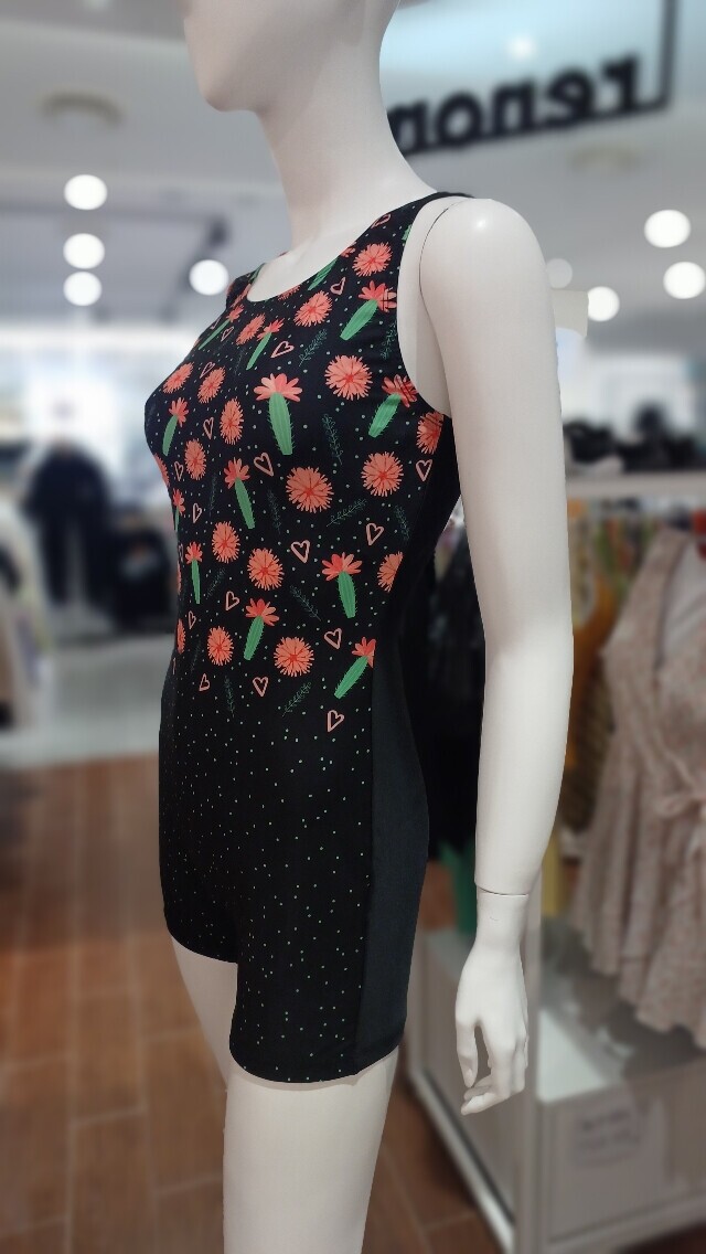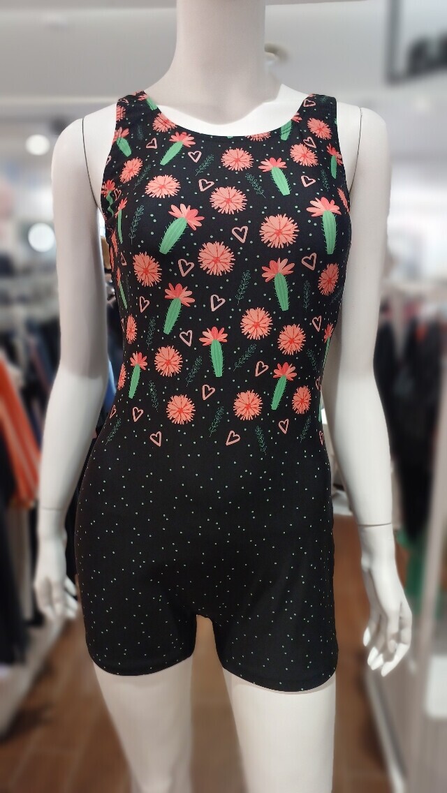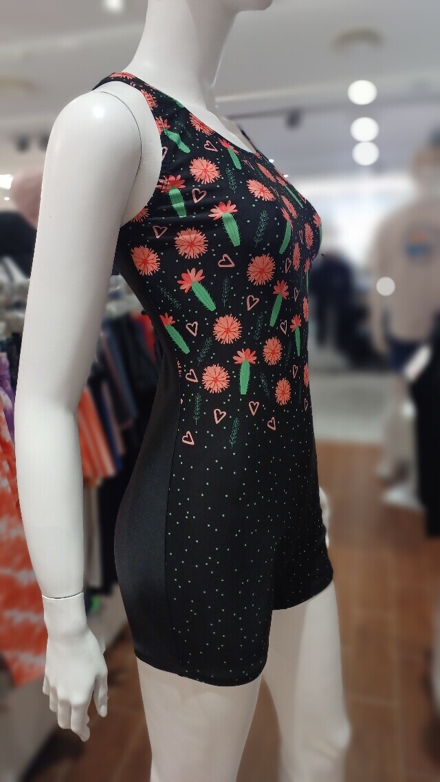 선인장을 모티브로 화사한 컬러 프린트가 체형커버에 도움이 되며 착용하기 편한 U백 라인의 2부 반신 수영복입니다.