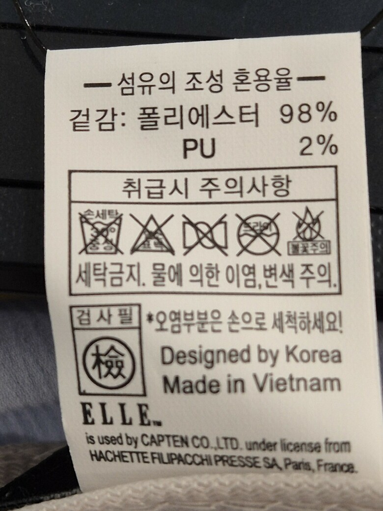 | 2. 소재 | 겉감:PU 2%,폴리에스터98 |