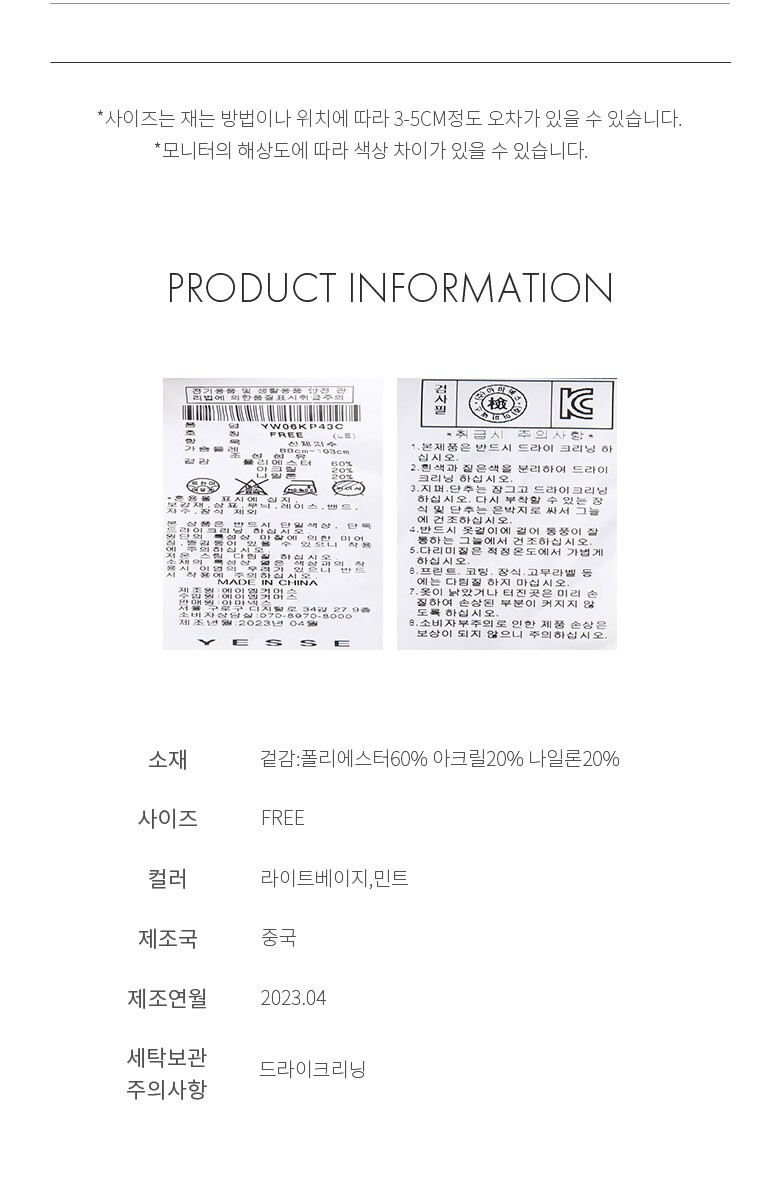 6. 세탁방법 및 취급시 주의사항 상세페이지및 라벨참조