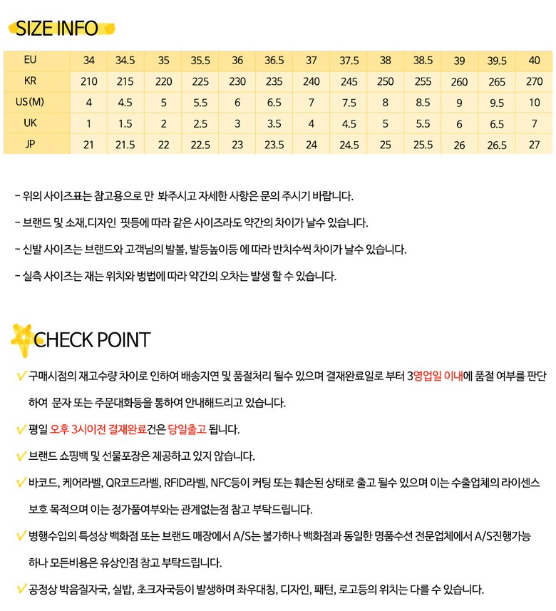 | 1. 제품 소재 (운동화인 경우에는 겉감, 안감을 구분하여 표시) | 상세페이지 참조 |