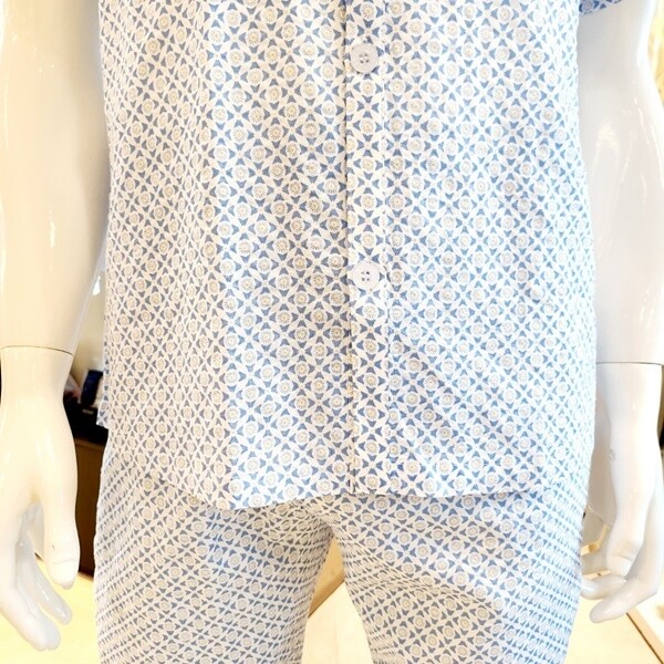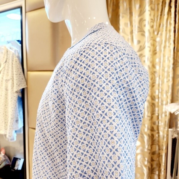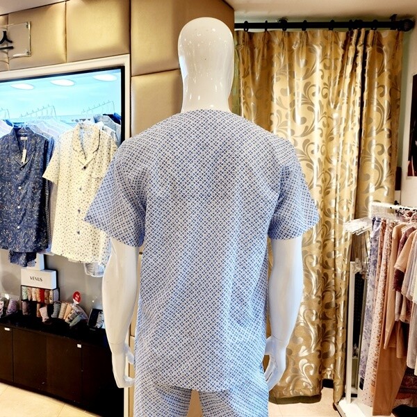 심플한 프린트를 사용한 남성용 오픈스타일 홈웨어입니다. 시원한 컬러감의 면레이온 소재를 사용하여 자연스러운 주름으로 몸에 닿는 감촉이 매우 좋습니다. 라운드넥 디자인으로 시원하고 가볍게 착용하기 좋습니다.