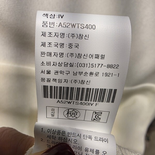 세탁방법 및 취급시 주의사항 : 드라이크리닝