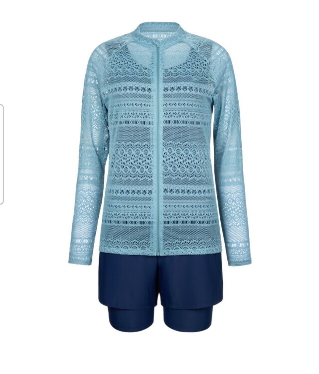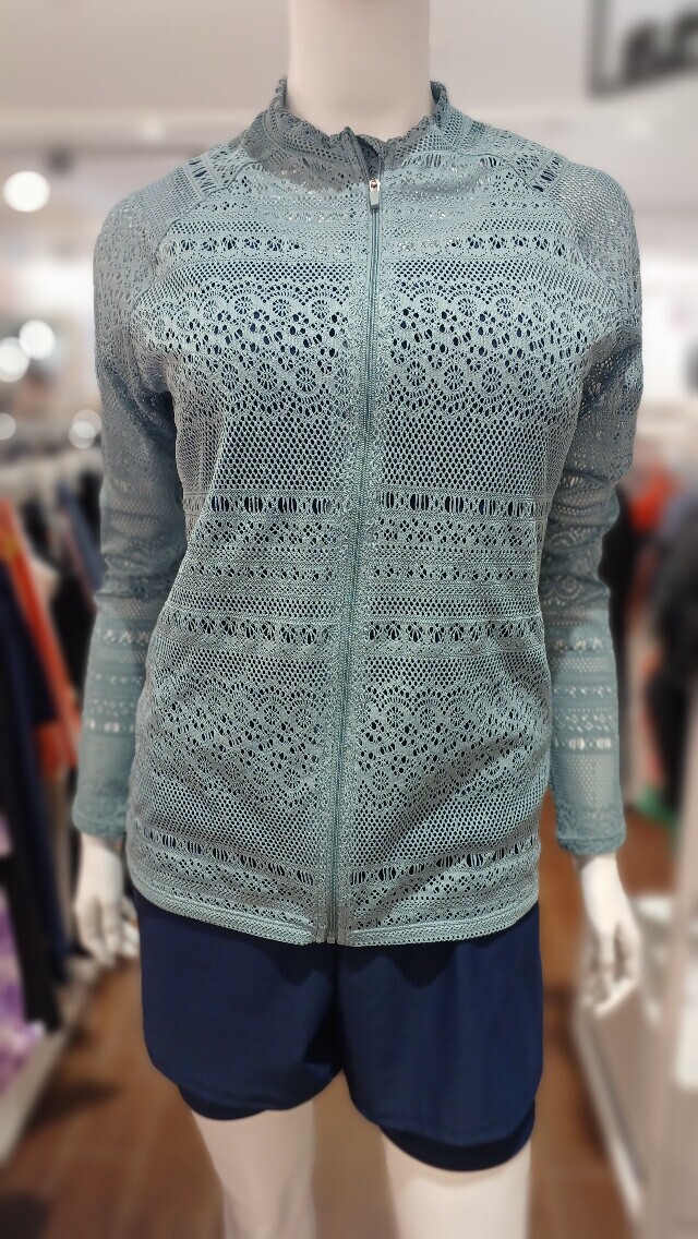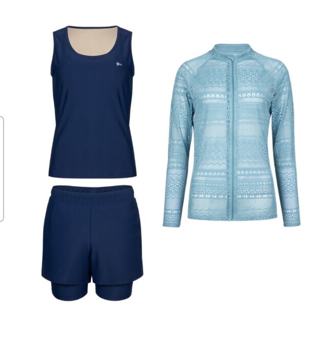 어깨를 감싸주는 탱크 탑과 레깅스 부착 팬츠로 착용하기 편한 크로셰 집업 3피스 래쉬가드셋트입니다 . 여유로운 핏으로 마담 스타일로 추천드립니다.
