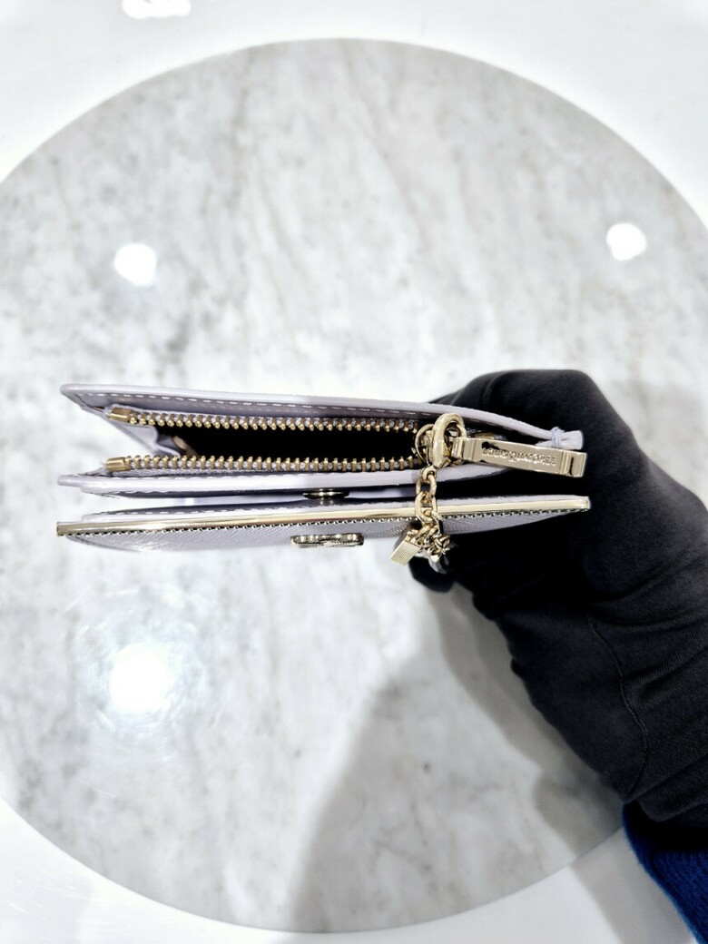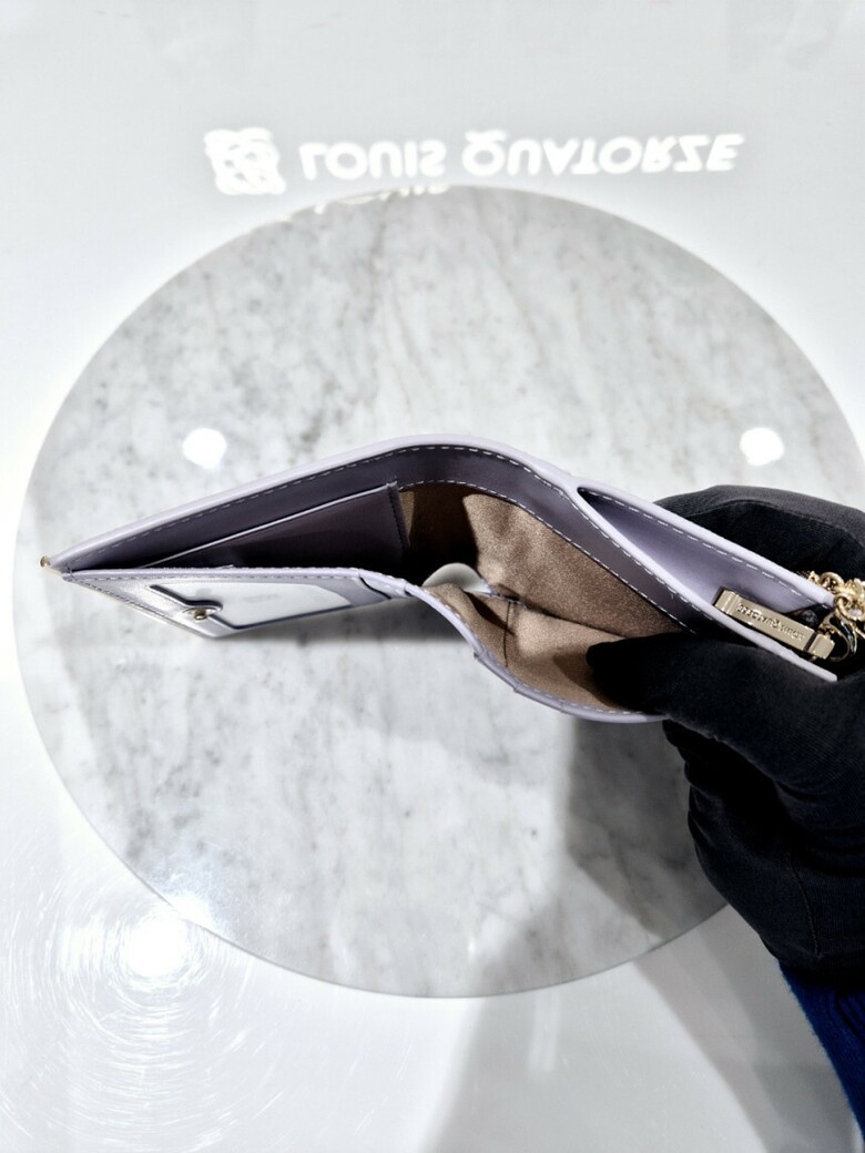 참장식과 바장식으로 여성스럽고 슬림하면서 세련된 스타일의 반지갑.