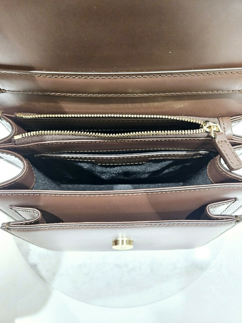 아코디언 형식으로 소지품을 분리하여 수납하기에 좋은 여성 숄더백입니다
