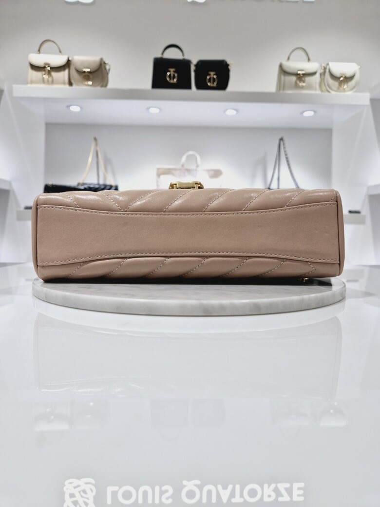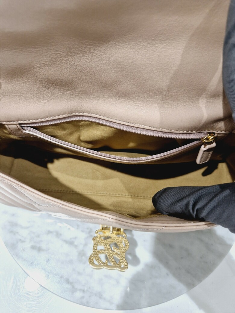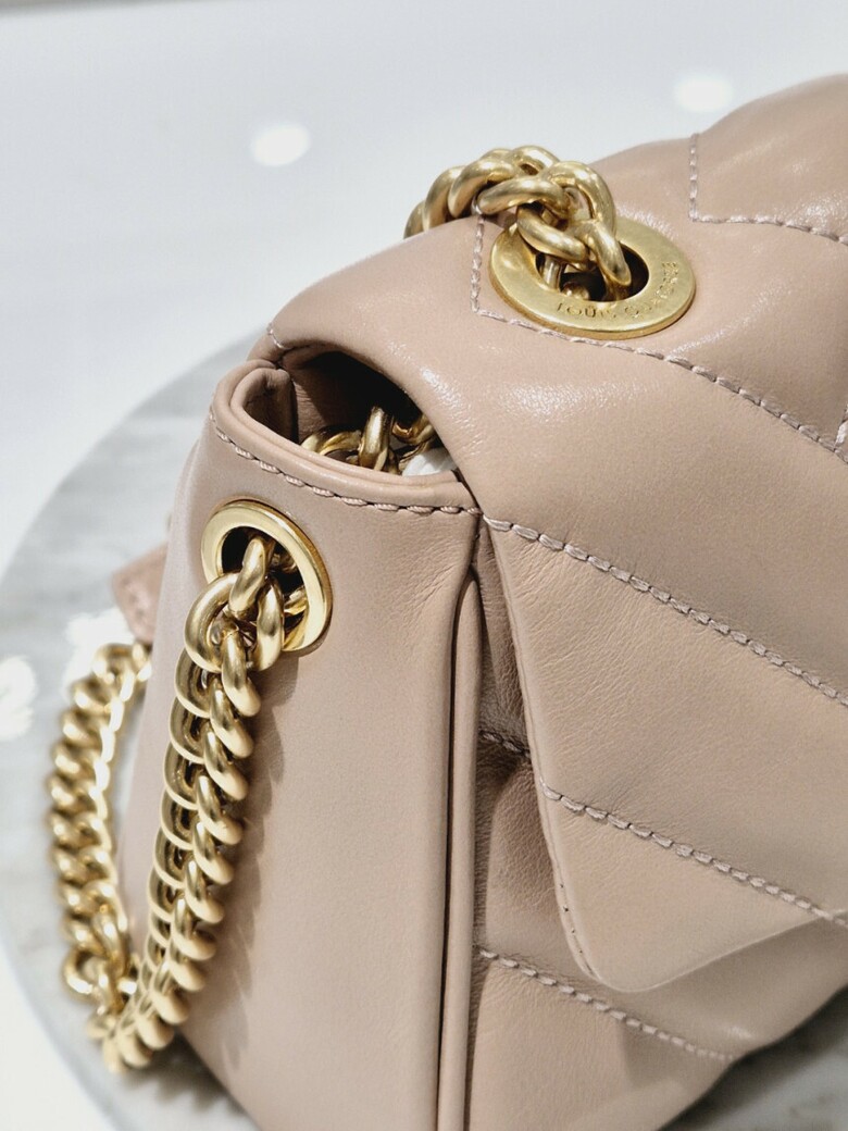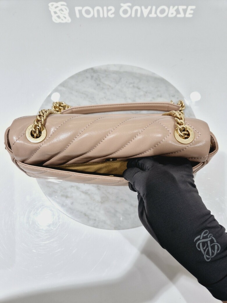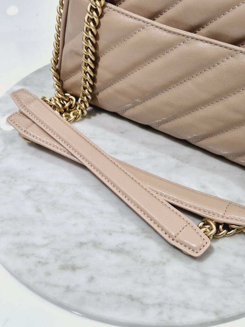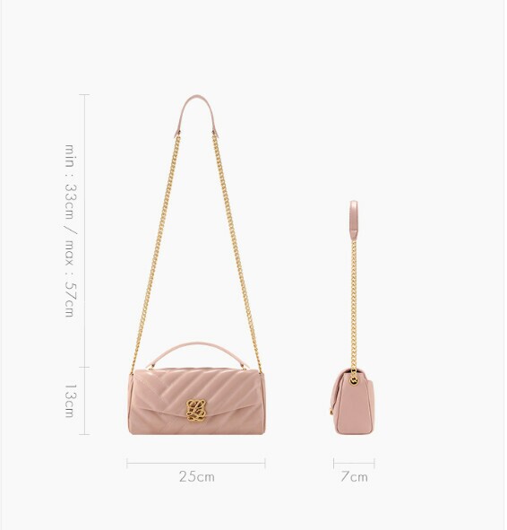 소프트한 형태감과 넉넉한 수납이 가능하고 체인 스트랩에 가죽을 믹스하여
