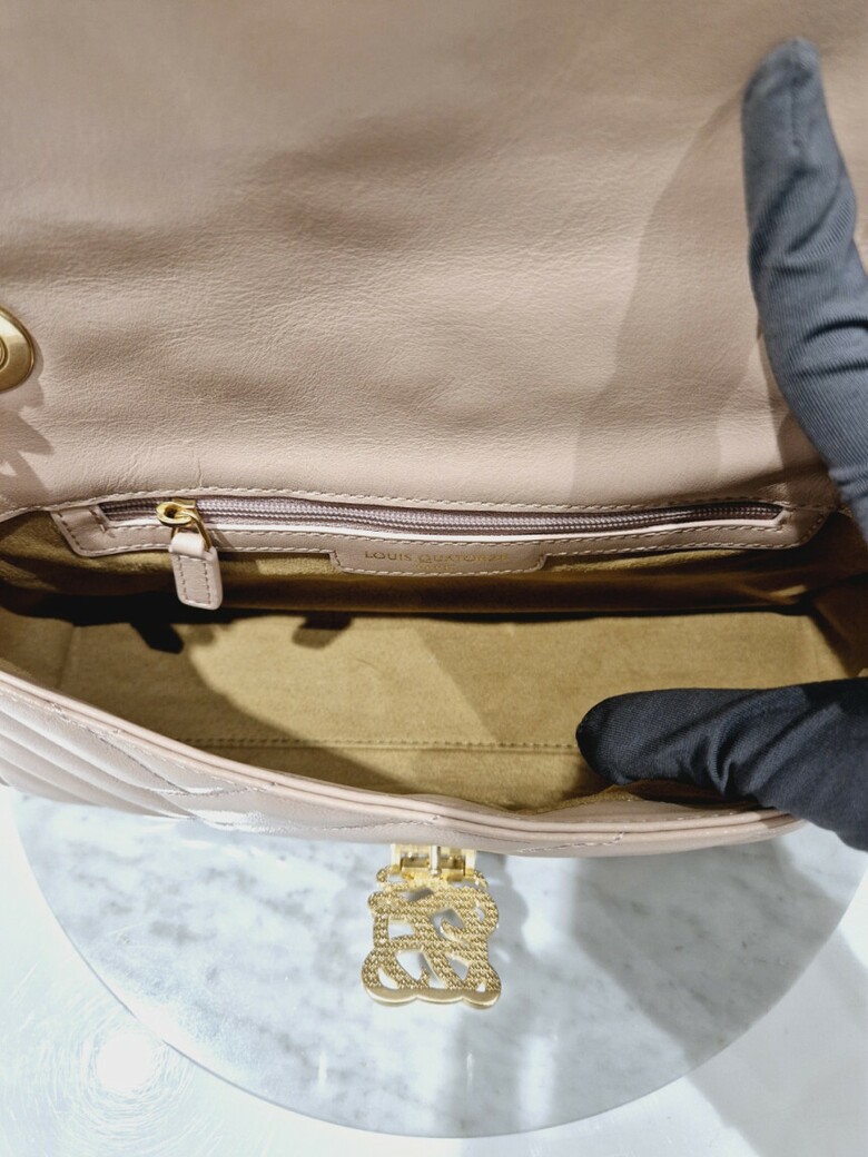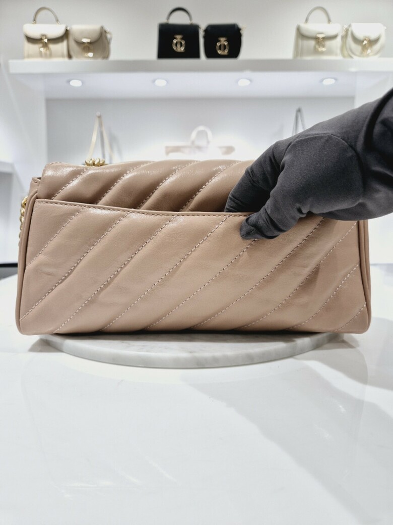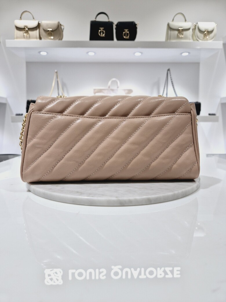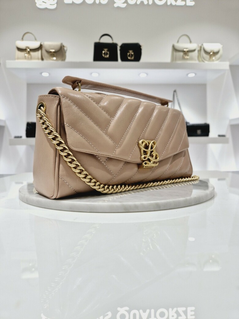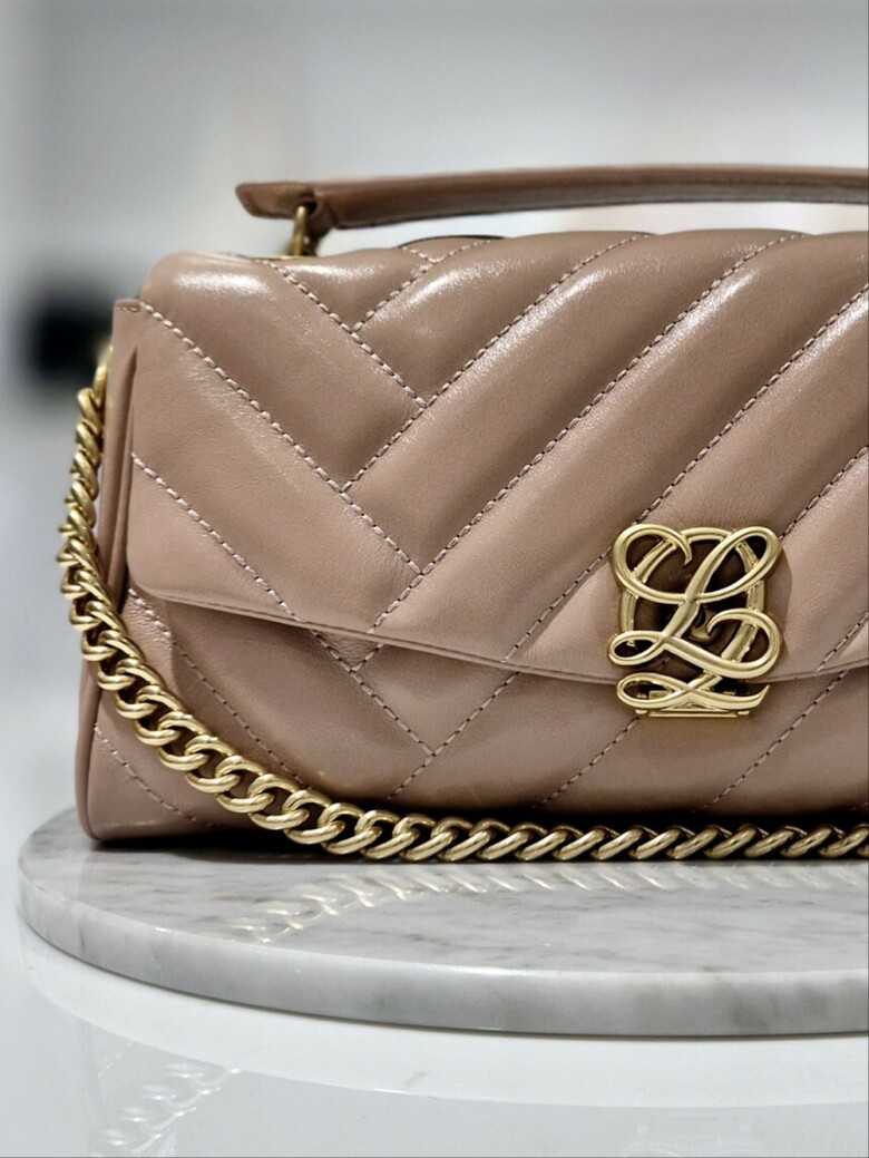 소프트한 형태감과 넉넉한 수납이 가능하고 체인 스트랩에 가죽을 믹스하여