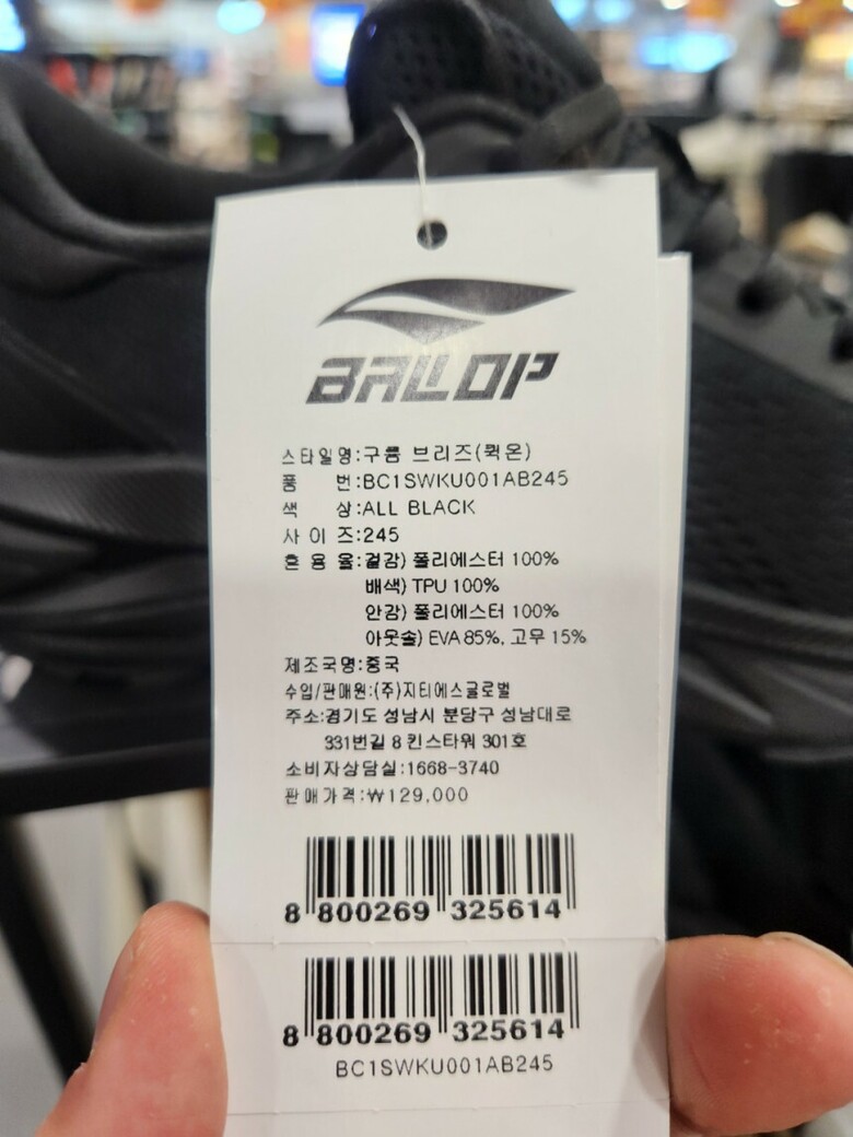 밸롭 남여공용 메모리폼 워킹화 구름브리즈 퀵온 올블랙 BC1SWKU001AB