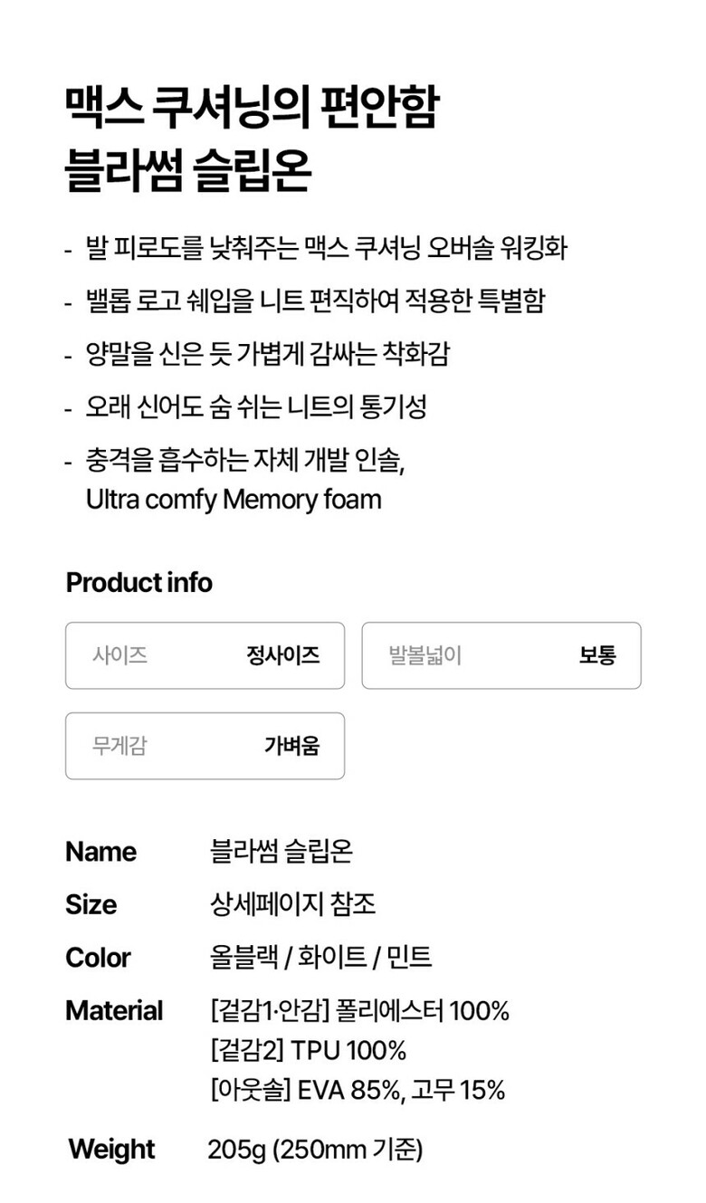 밸롭 남여공용 쿠션좋은 워킹화 블라썸 슬립온 블랙 BC1SWKU008BK