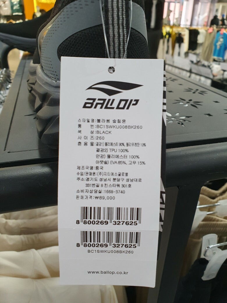 | 1. 제품 소재 (운동화인 경우에는 겉감, 안감을 구분하여 표시) | 배색:폴리에스테르, 고무 |