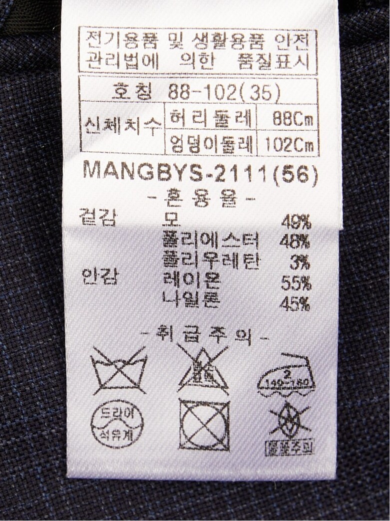 겉감 : 모 49% 폴리에스터 48% 폴리우레탄 3% 안감 : 레이온 55% 나일론 45%