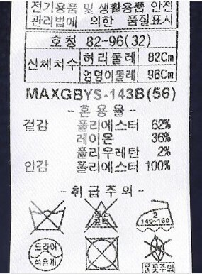 겉감 레이온 36%|*|폴리에스터 62%|*|폴리우레탄 2% 안감폴리에스터 100%