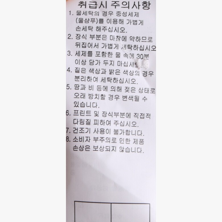 | 6. 세탁방법 및 취급시 주의사항 | 상품상세참조 |
