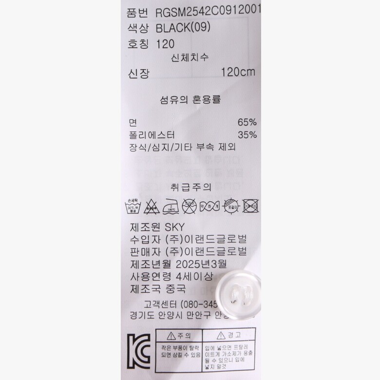| 1. 제품 소재 (섬유의 조성 또는 혼용률을 백분율로 표시, 기능성인 경우 성적서 또는 허가서) | 상품상세참조 |