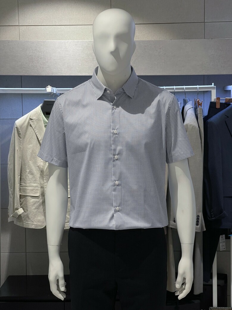트루젠 네이비체크 면스판 반팔셔츠 2322RD092214