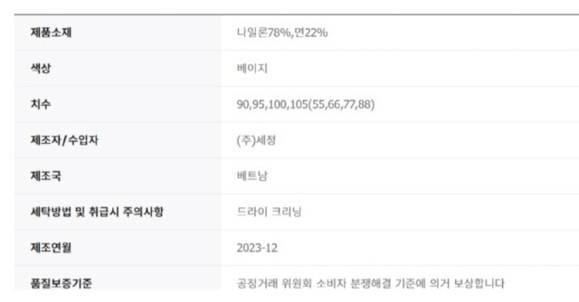 | 1. 제품 소재 (섬유의 조성 또는 혼용률을 백분율로 표시, 기능성인 경우 성적서 또는 허가서) | 상품상세참조 |