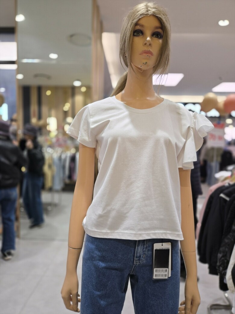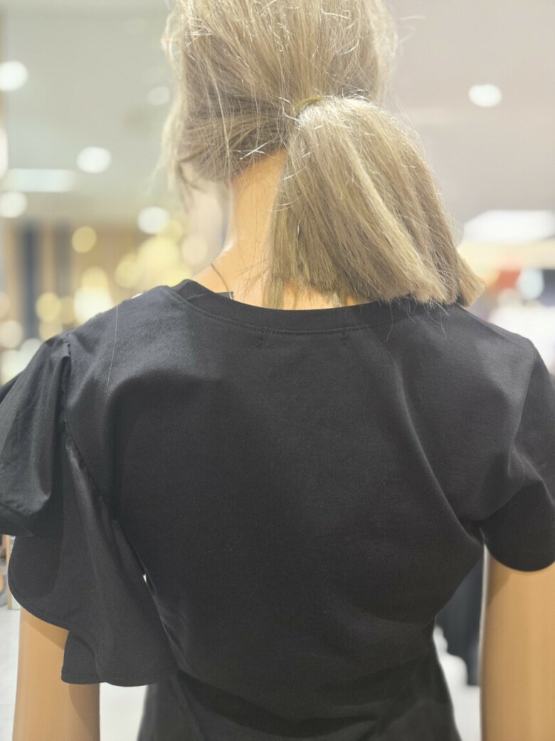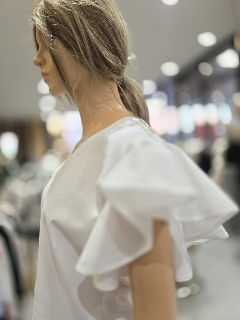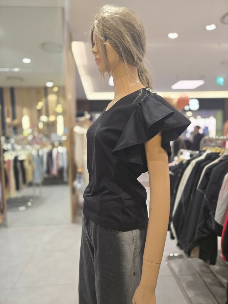 언발 러플 단추 포인트 티셔츠 ER2JT-401