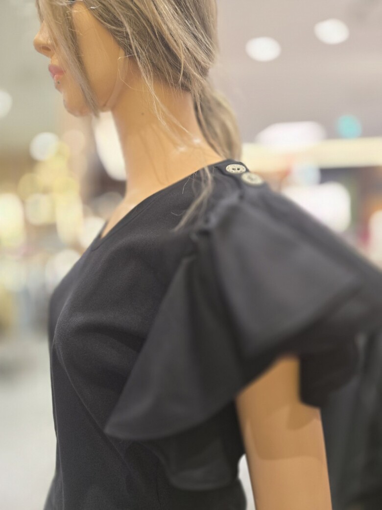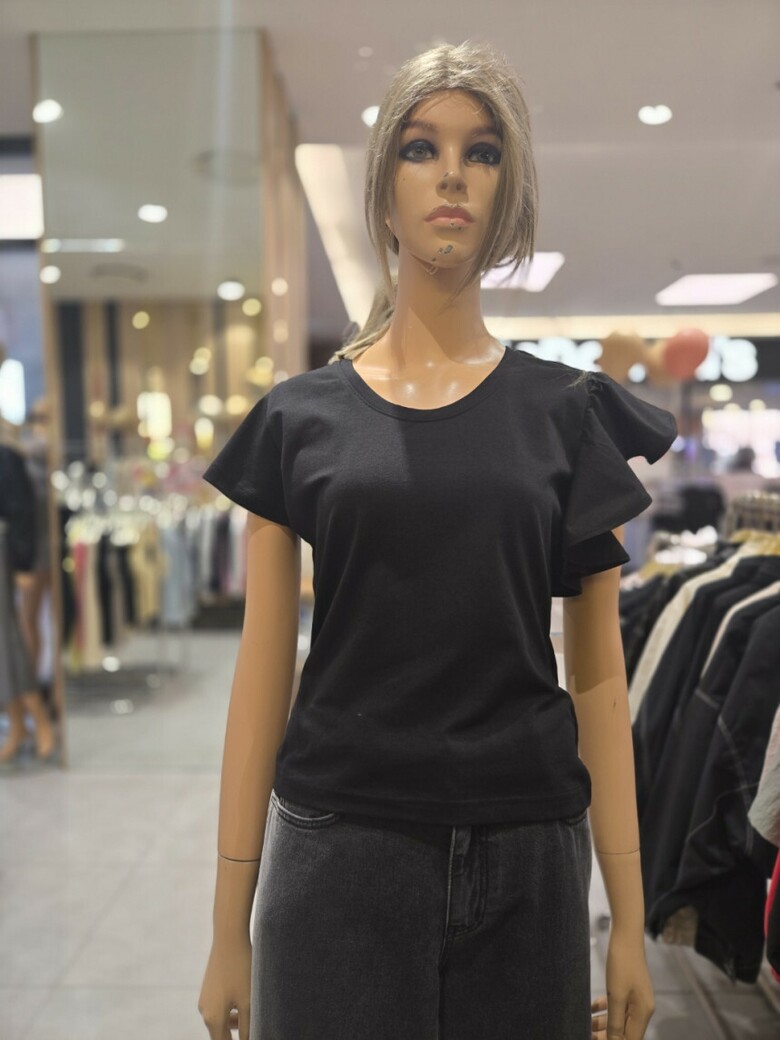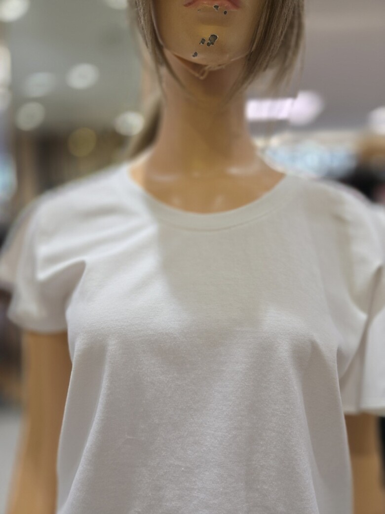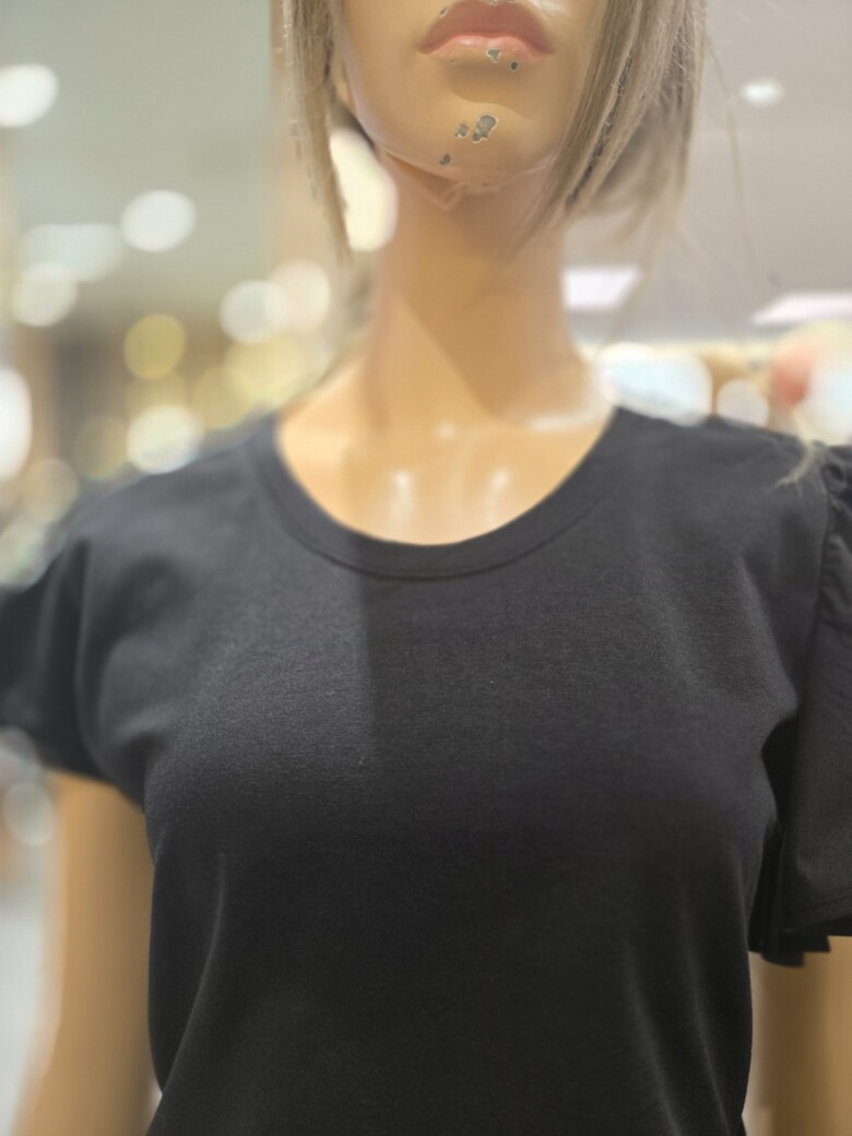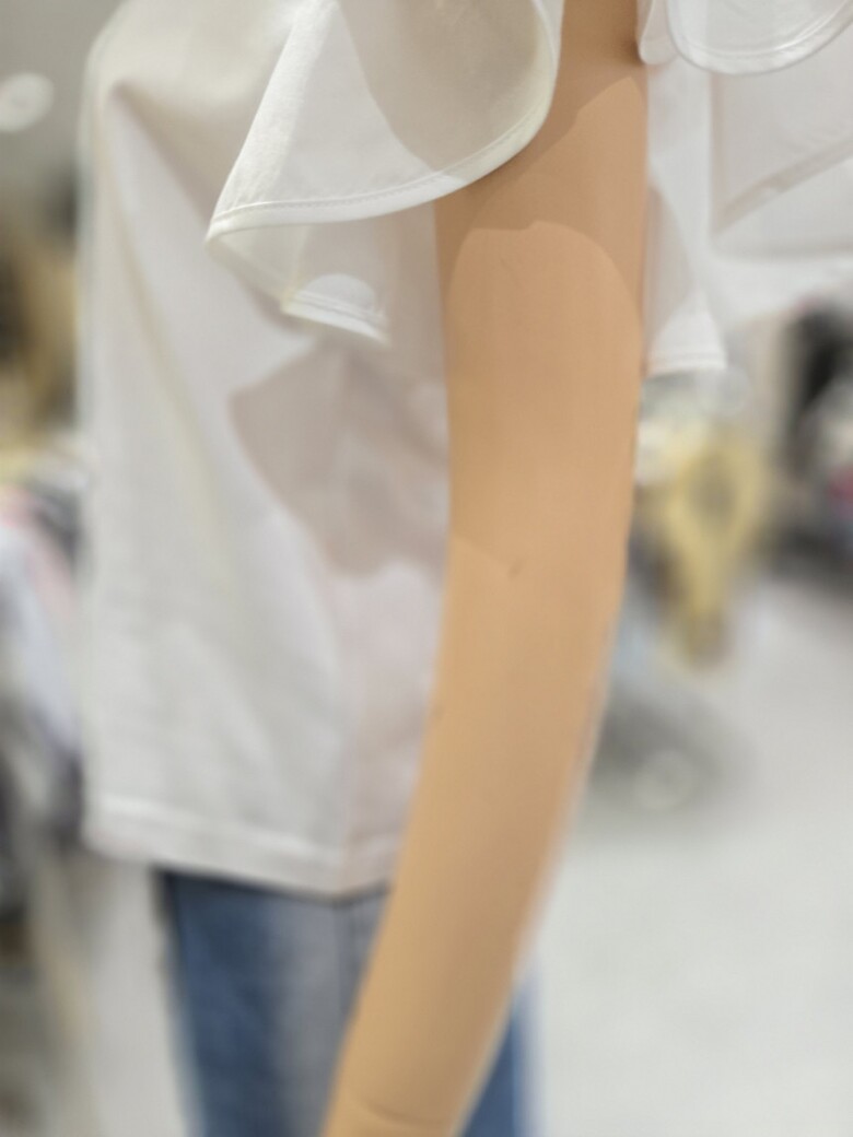 언발 러플 단추 포인트 티셔츠 ER2JT-401