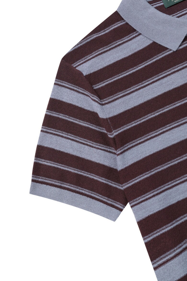브렌우드 [시리즈:셀렉션] 블루 스트라이프 워셔블 폴로넥 남자 반팔 니트티셔츠 BRWAM25821BUX