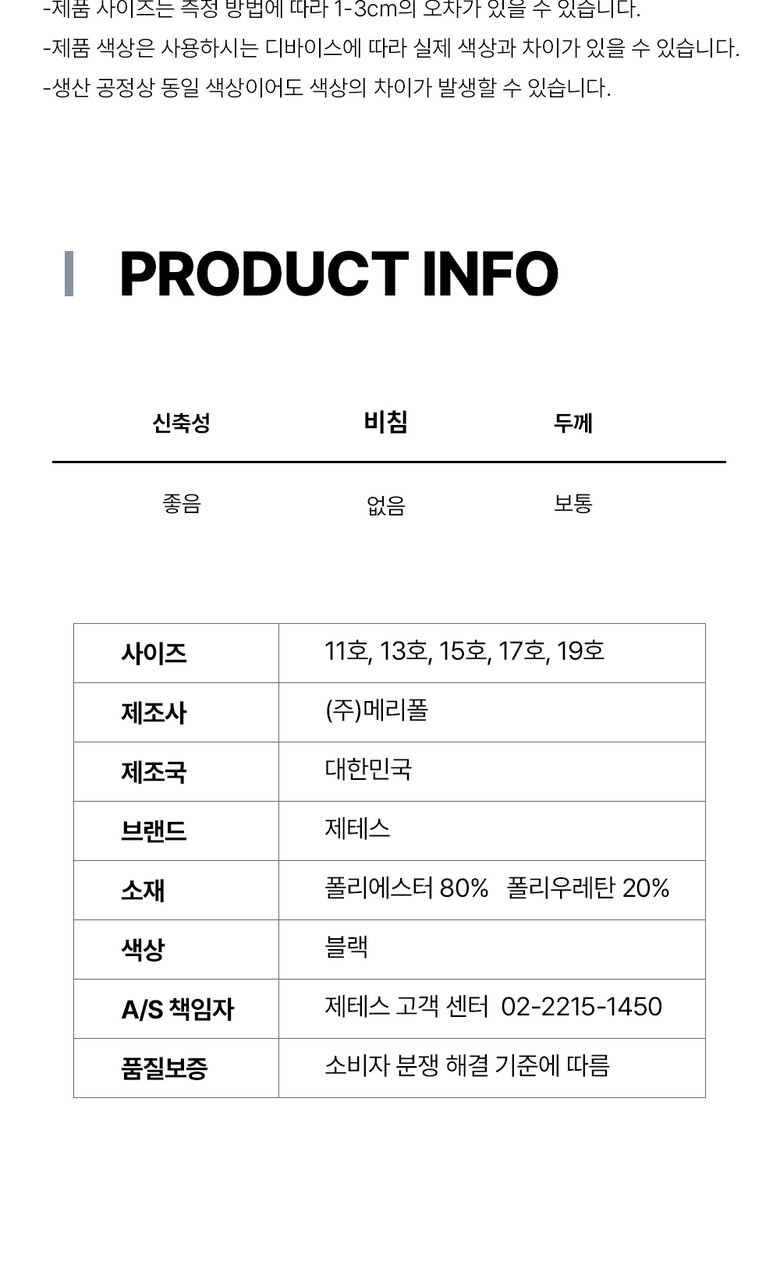 1. 제품 소재 (섬유의 조성 또는 혼용률을 백분율로 표시, 기능성인 경우 성적서 또는 허가서) | 폴리에스터 80%, 폴리우레탄 20% |