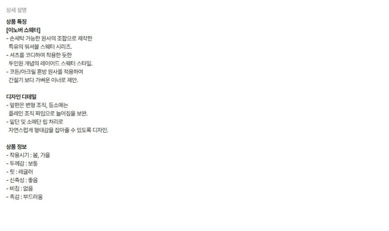 | 6. 세탁방법 및 취급시 주의사항 | 상품상세참조 |