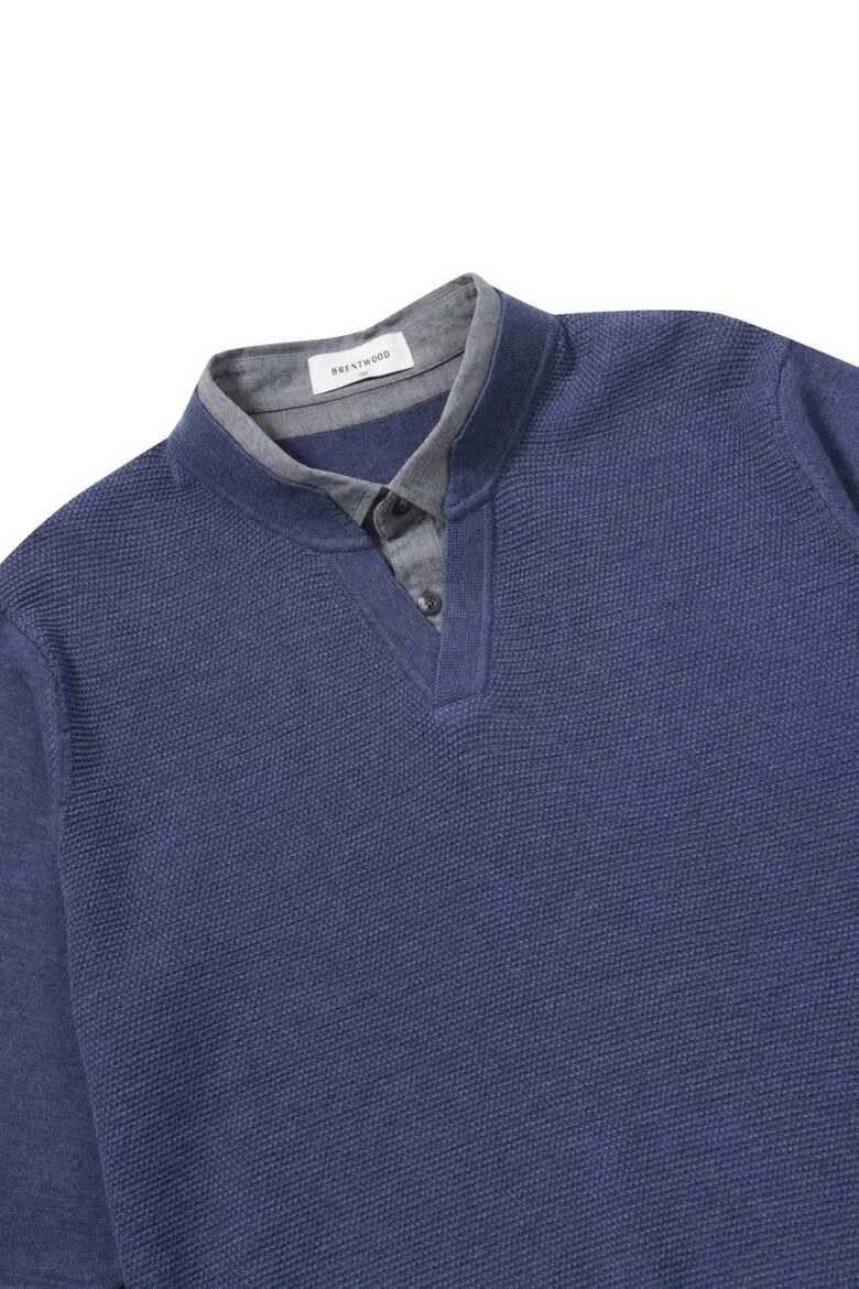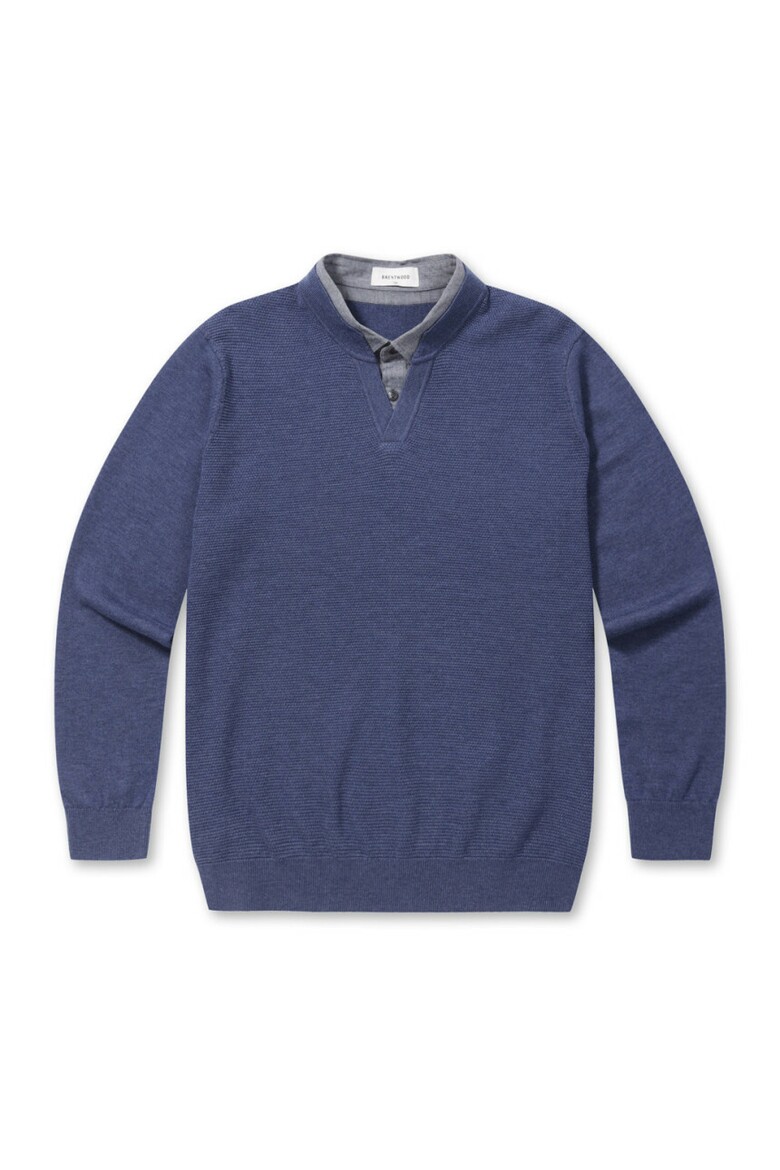 브렌우드 [시리즈:이노버] 블루 셔츠레이어드 워셔블 면혼방 남자 긴팔 니트티셔츠 BRWAX25161BUX