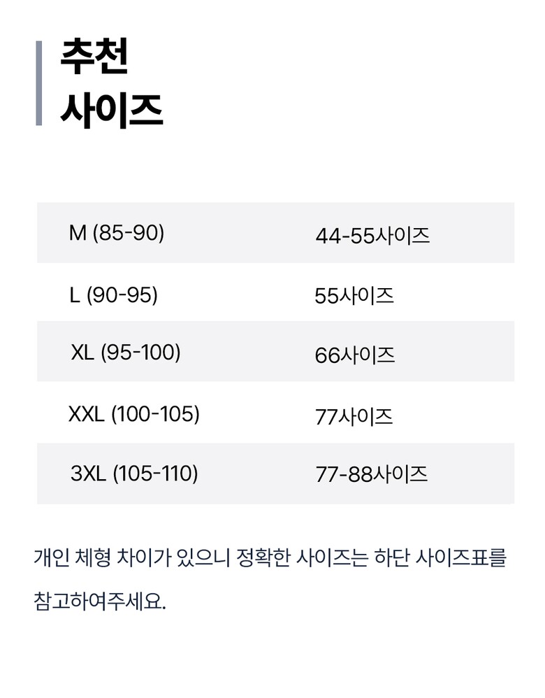 | 3. 치수 | M, L, XL, XXL, 3XL |