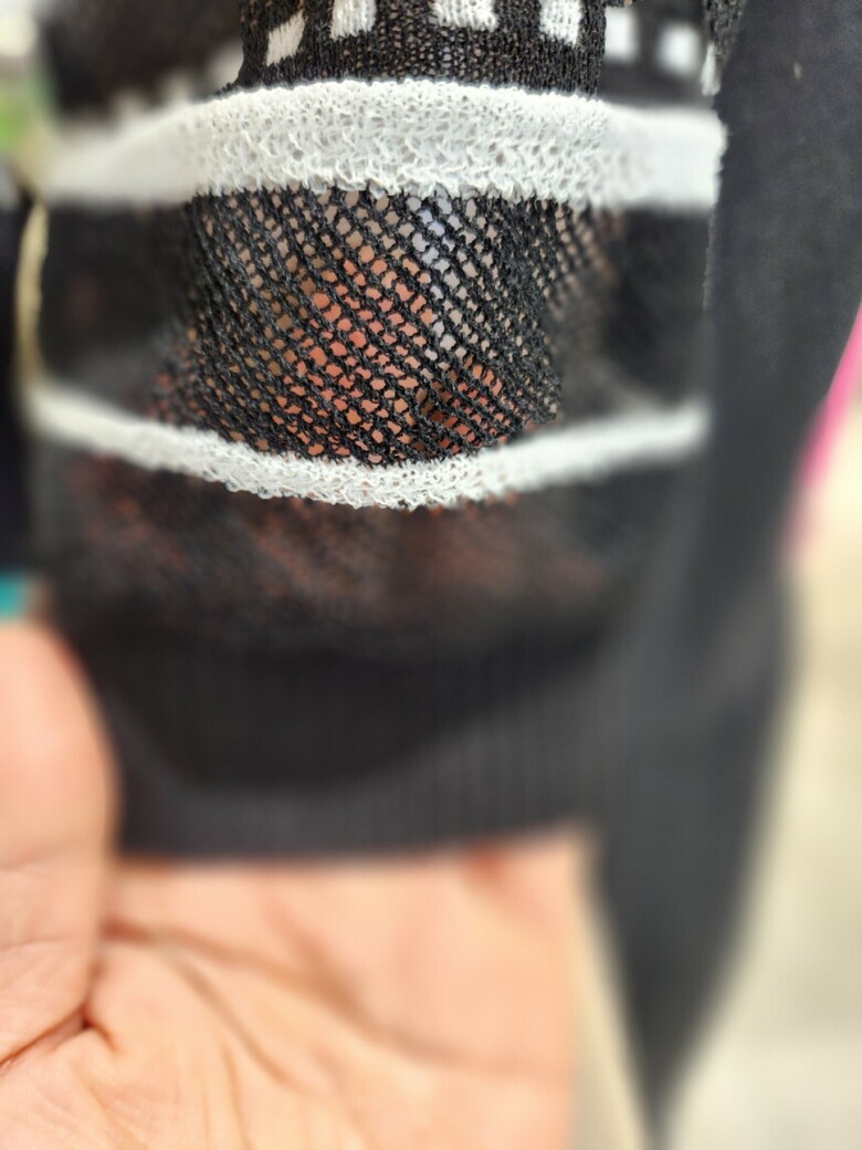 7.니트류는 자가드 프린트 기법으로 제작되어 앞부분에 예쁜 프린트처리가 되어 있습니다