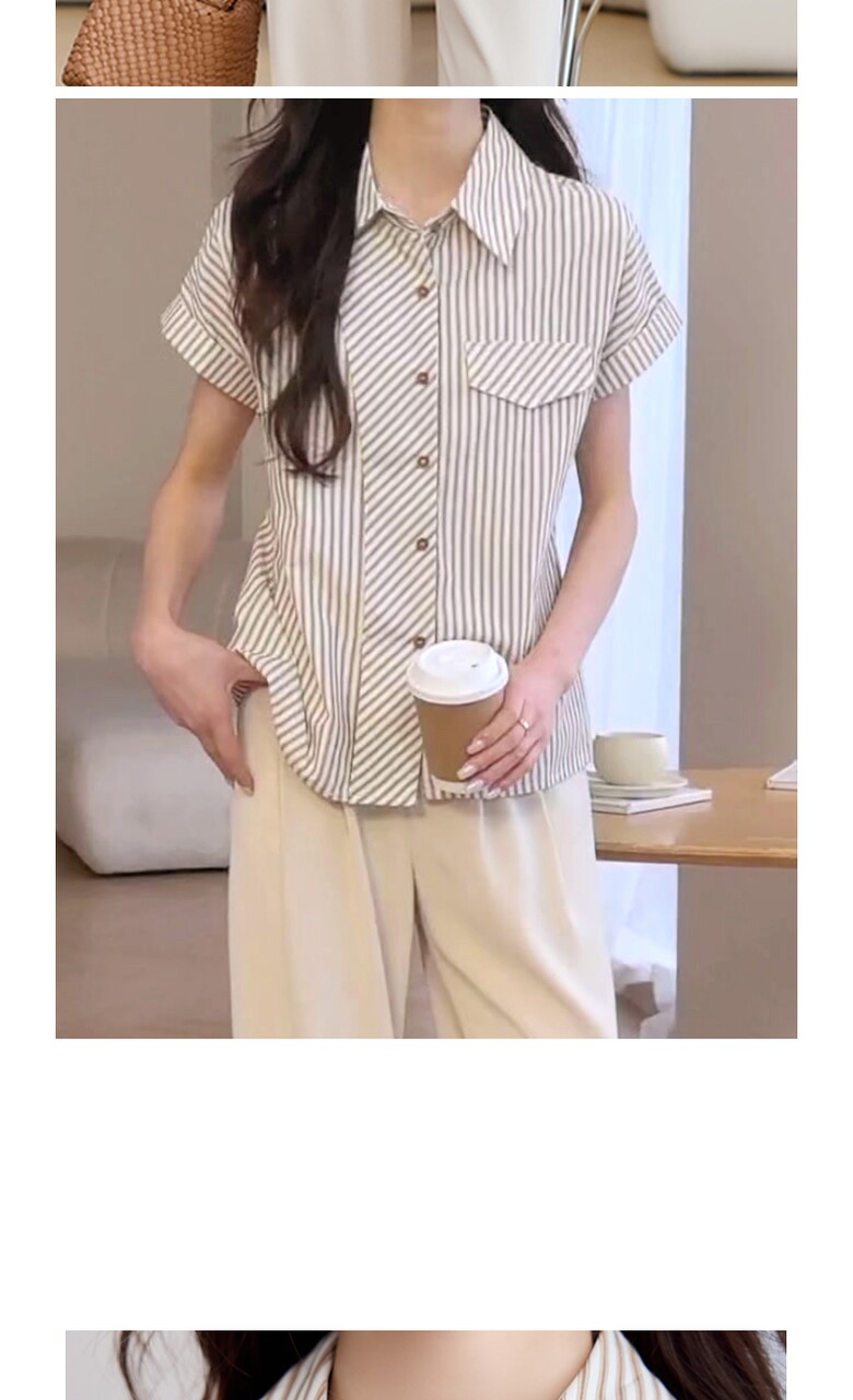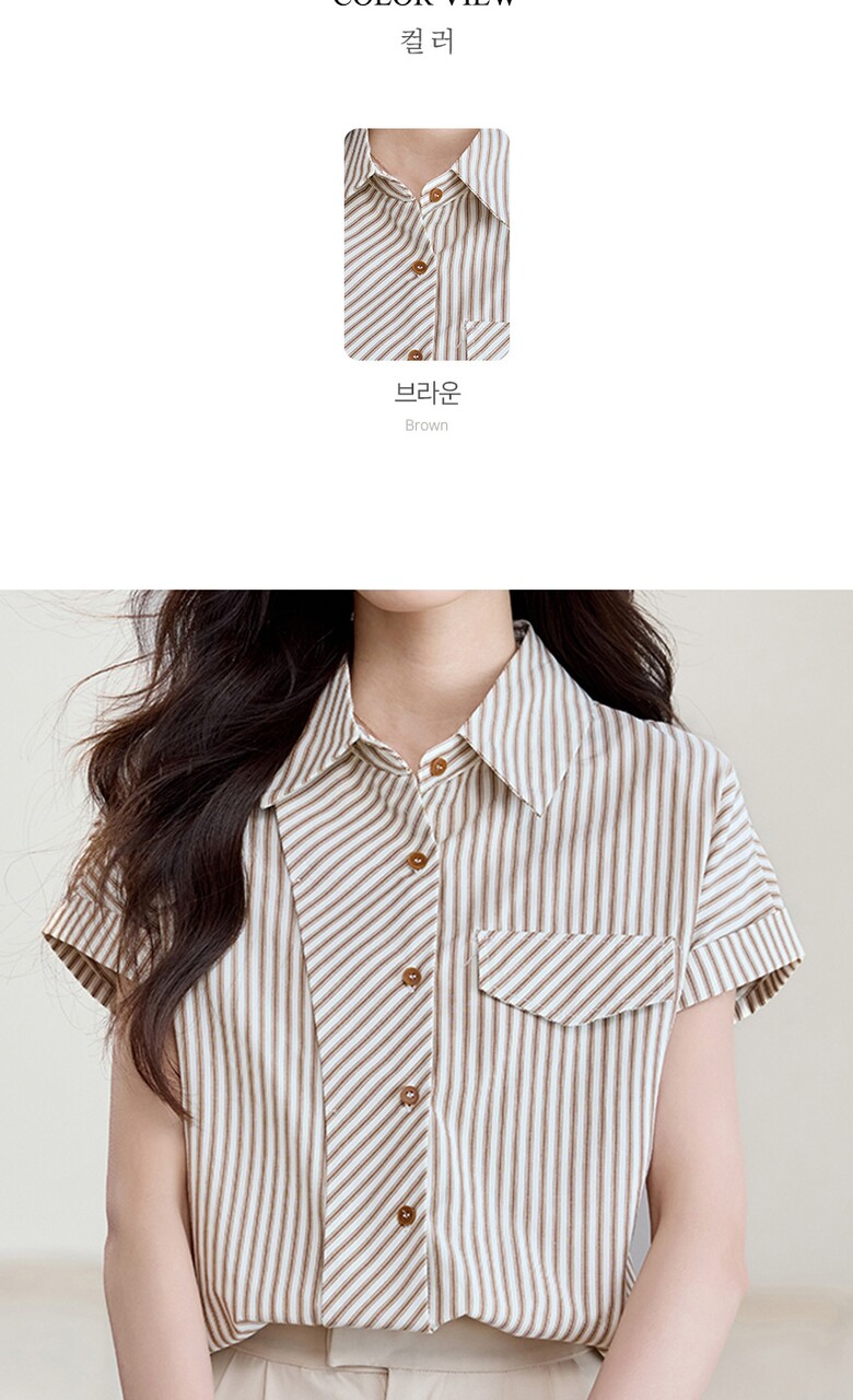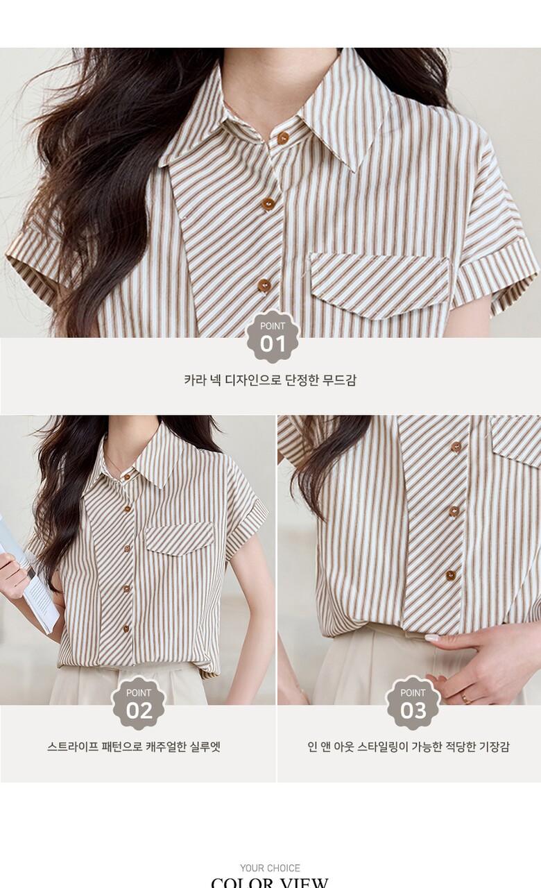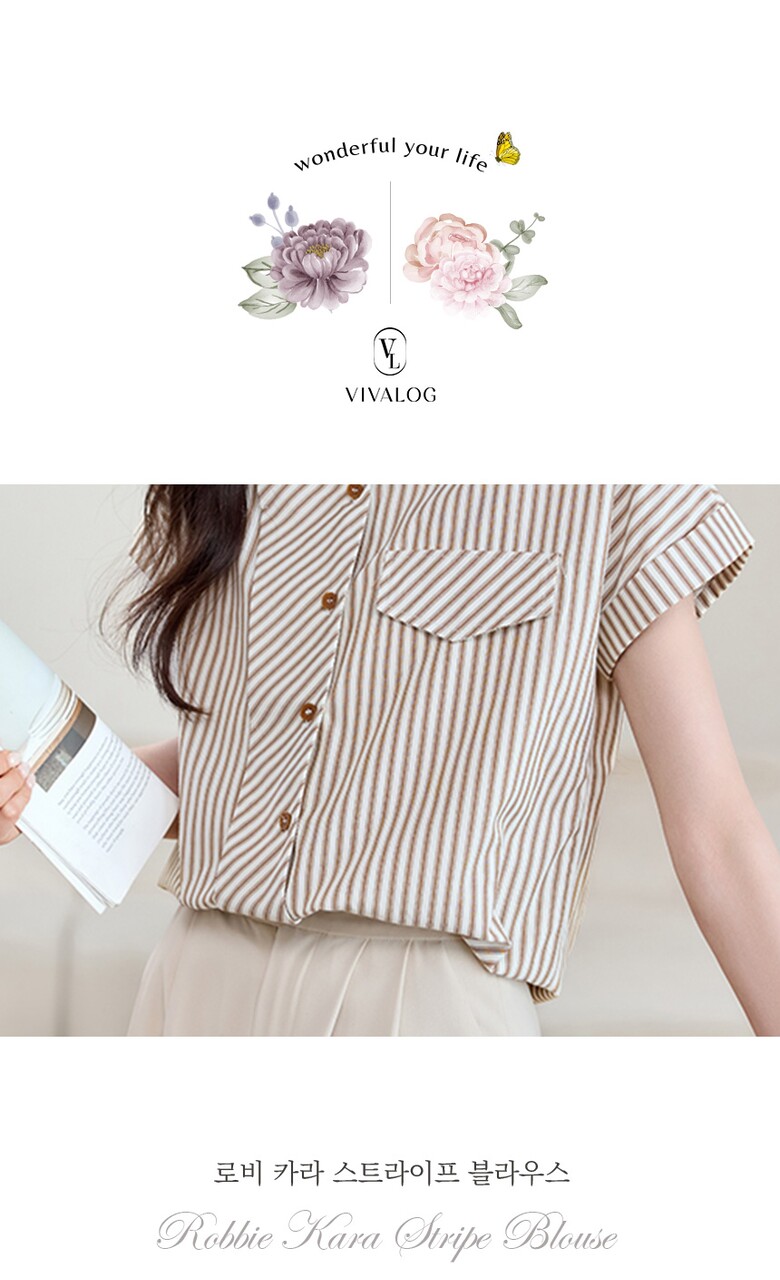 [비바로그] 로비 카라 스트라이프 블라우스