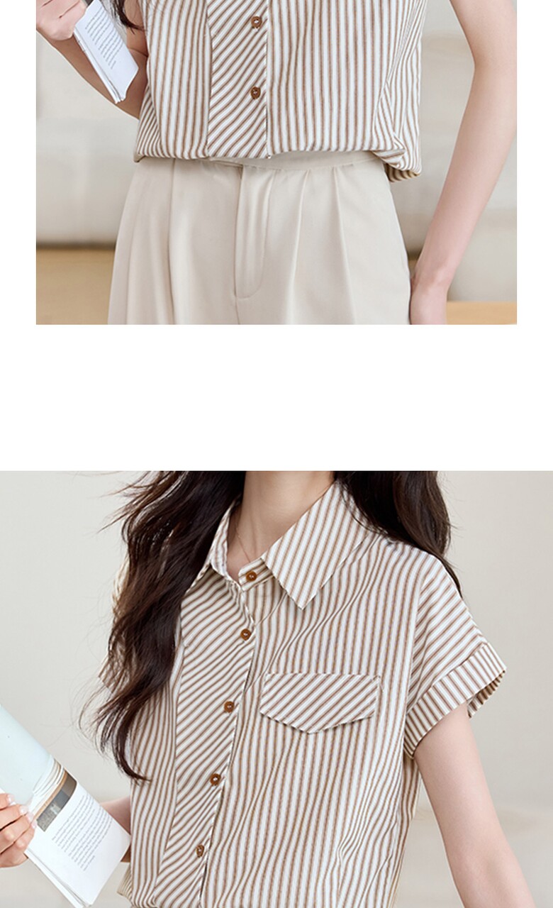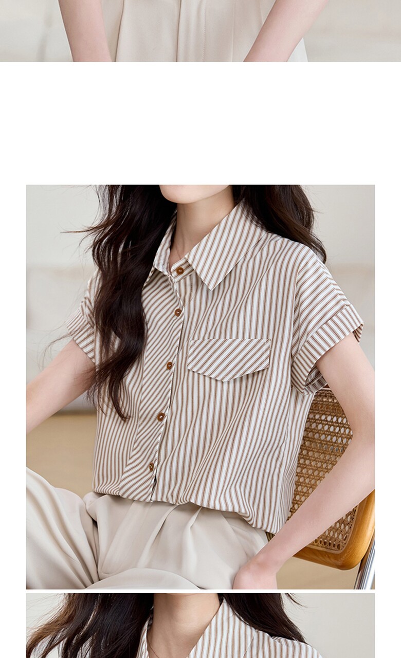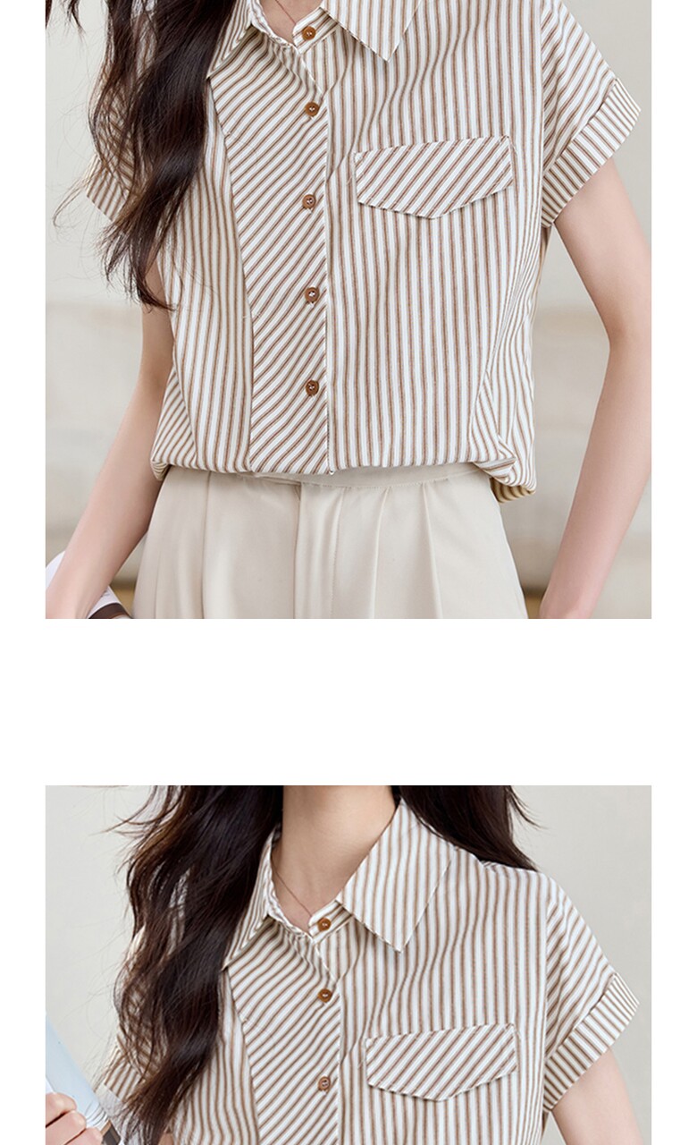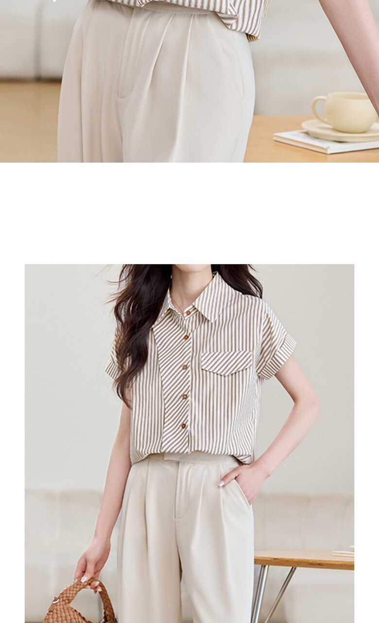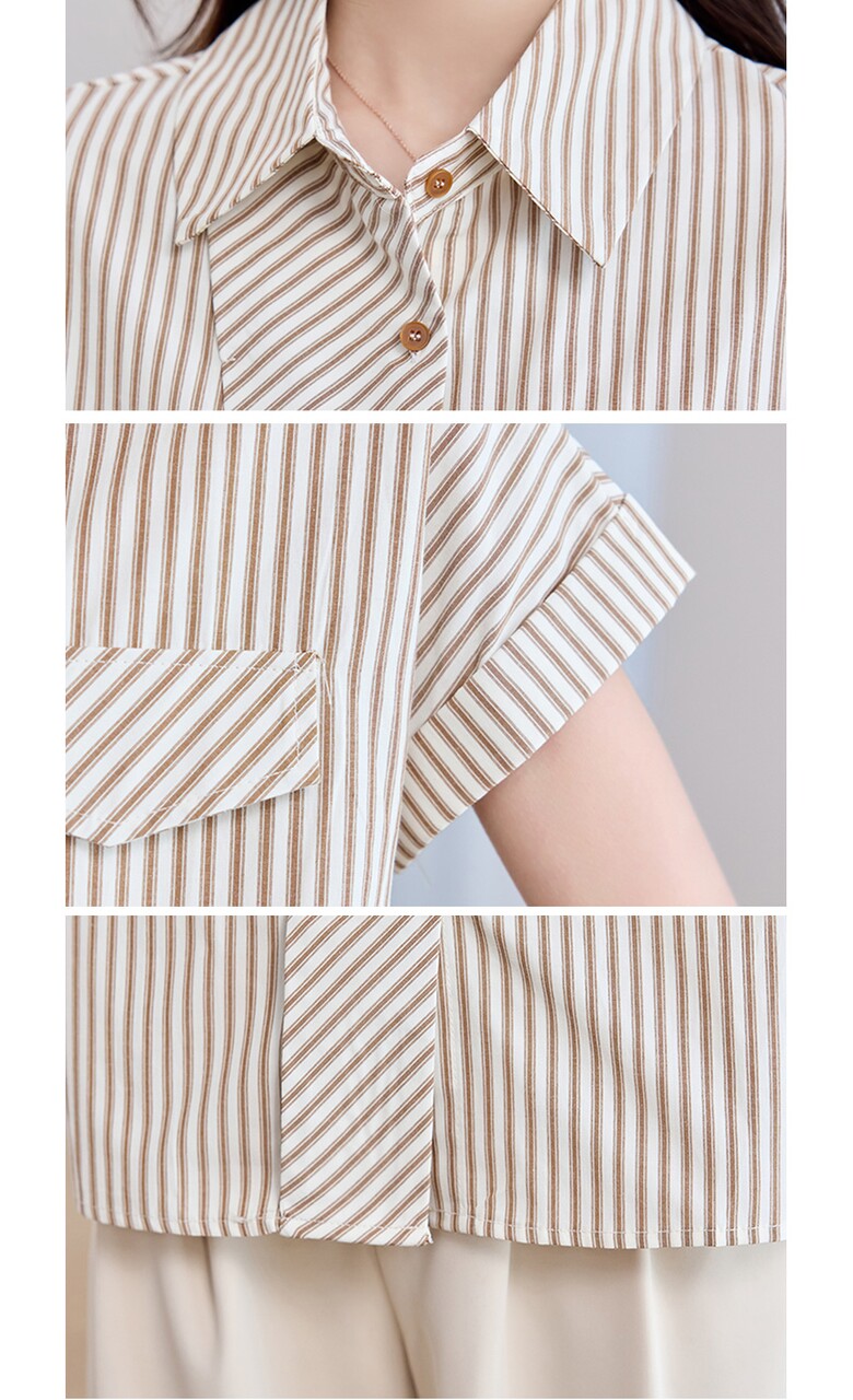 [비바로그] 로비 카라 스트라이프 블라우스