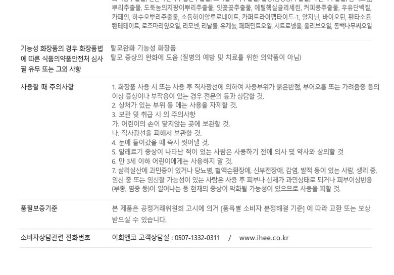 8. 기능성 화장품의 경우 화장품법에 따른 식품의약품안전청 심사 필 유무 | 상세페이지 참조 |