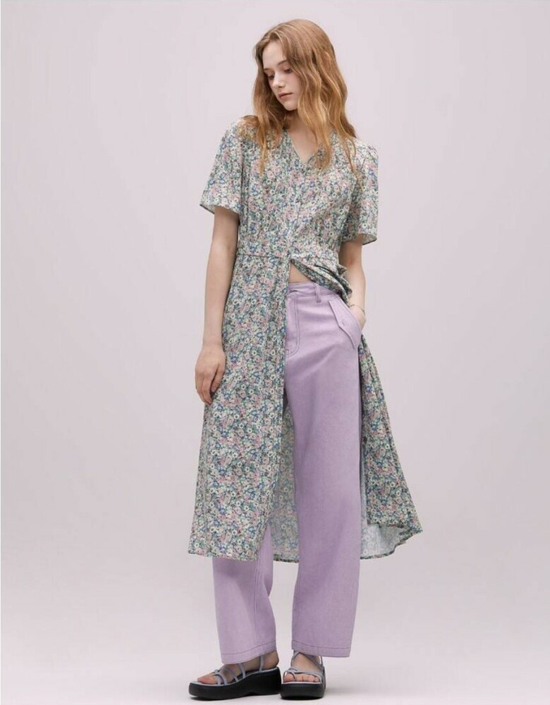 핫한 컬러감의 플라워 패턴에 배색 레이스로