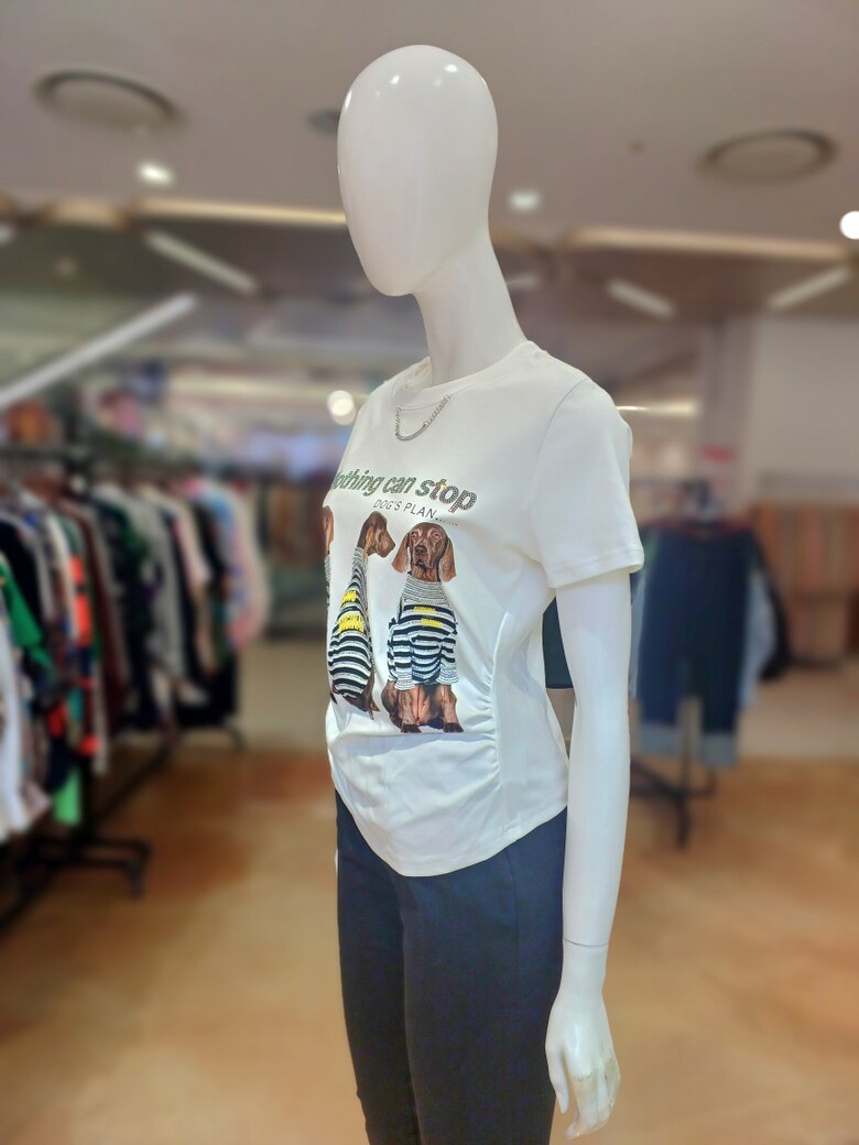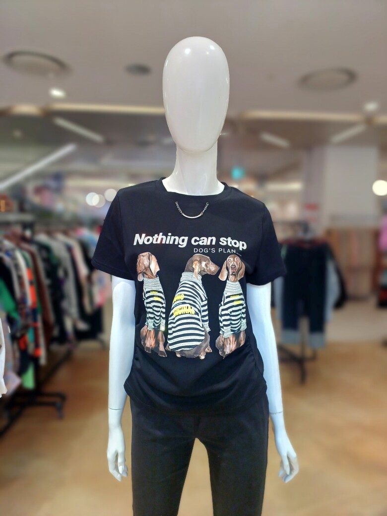체인장식 강아지프린트 반팔 티셔츠입니다