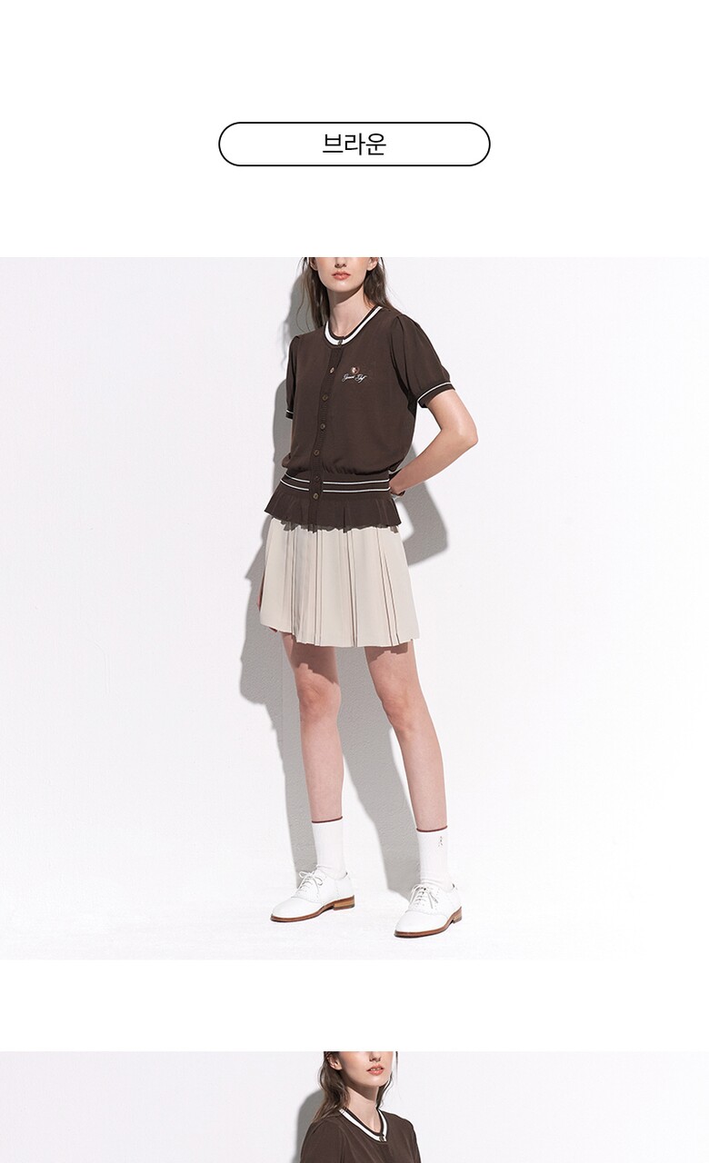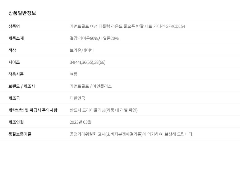 가먼트골프 여성 페플럼 라운드 풀오픈 반팔 니트 가디건 GFKCD254