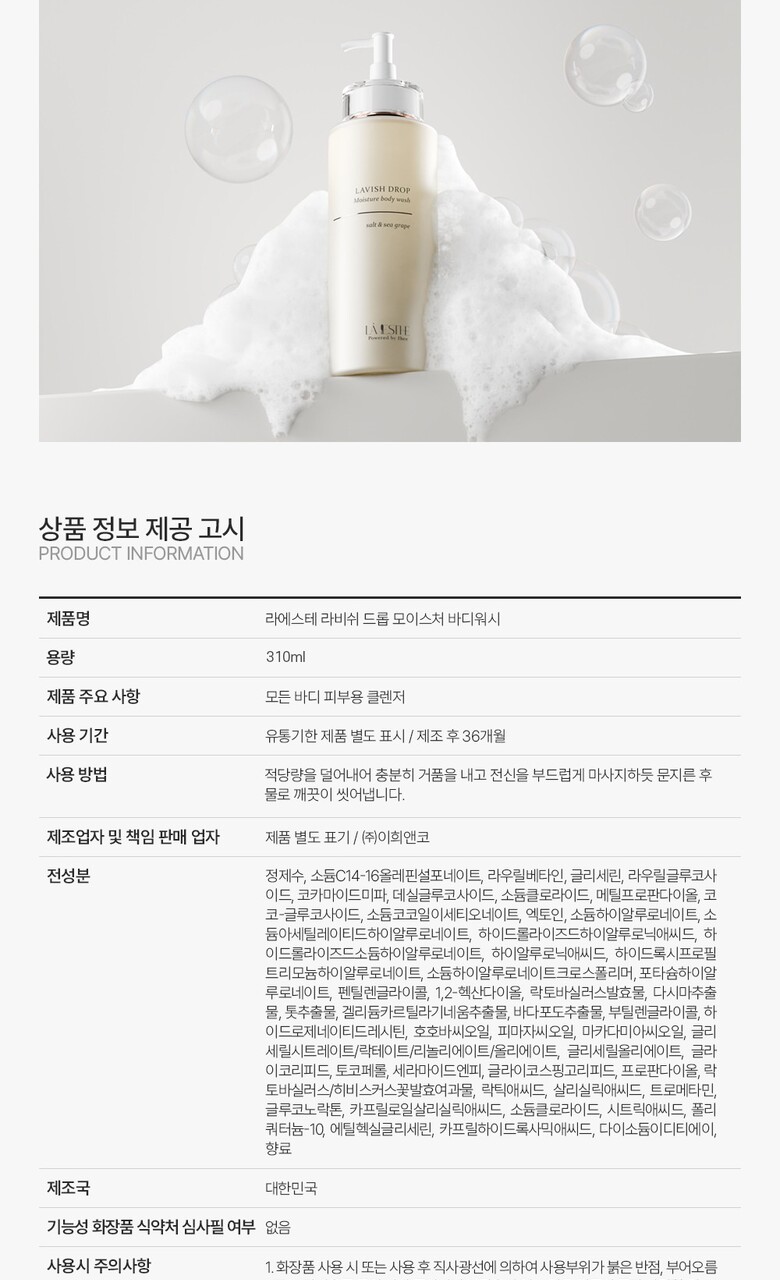 라에스테 라비쉬 드롭 모이스처 바디워시 310ml
