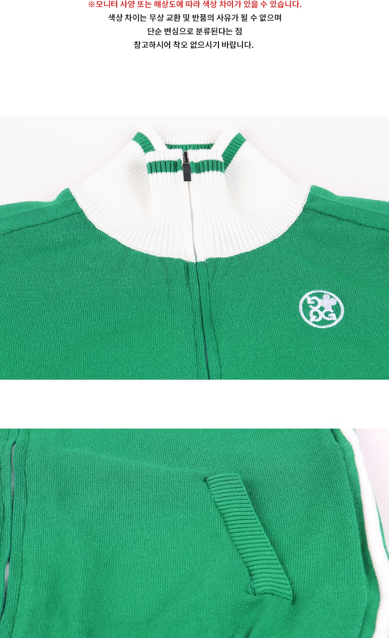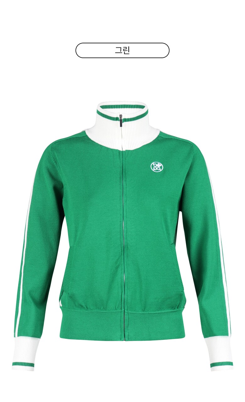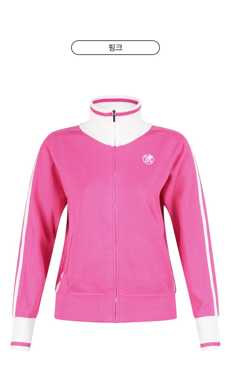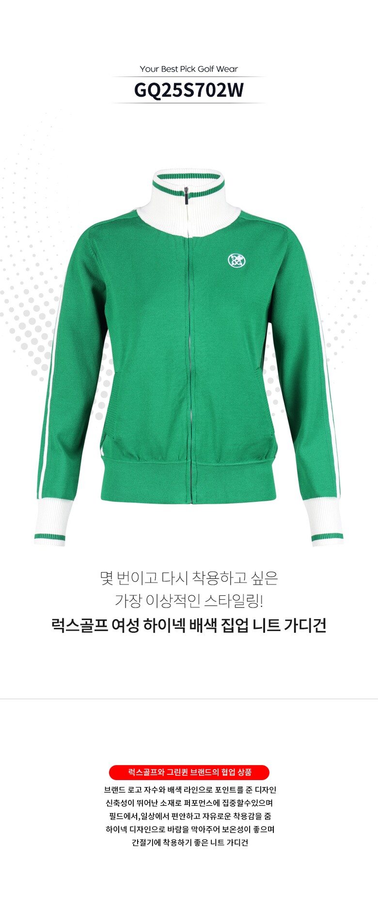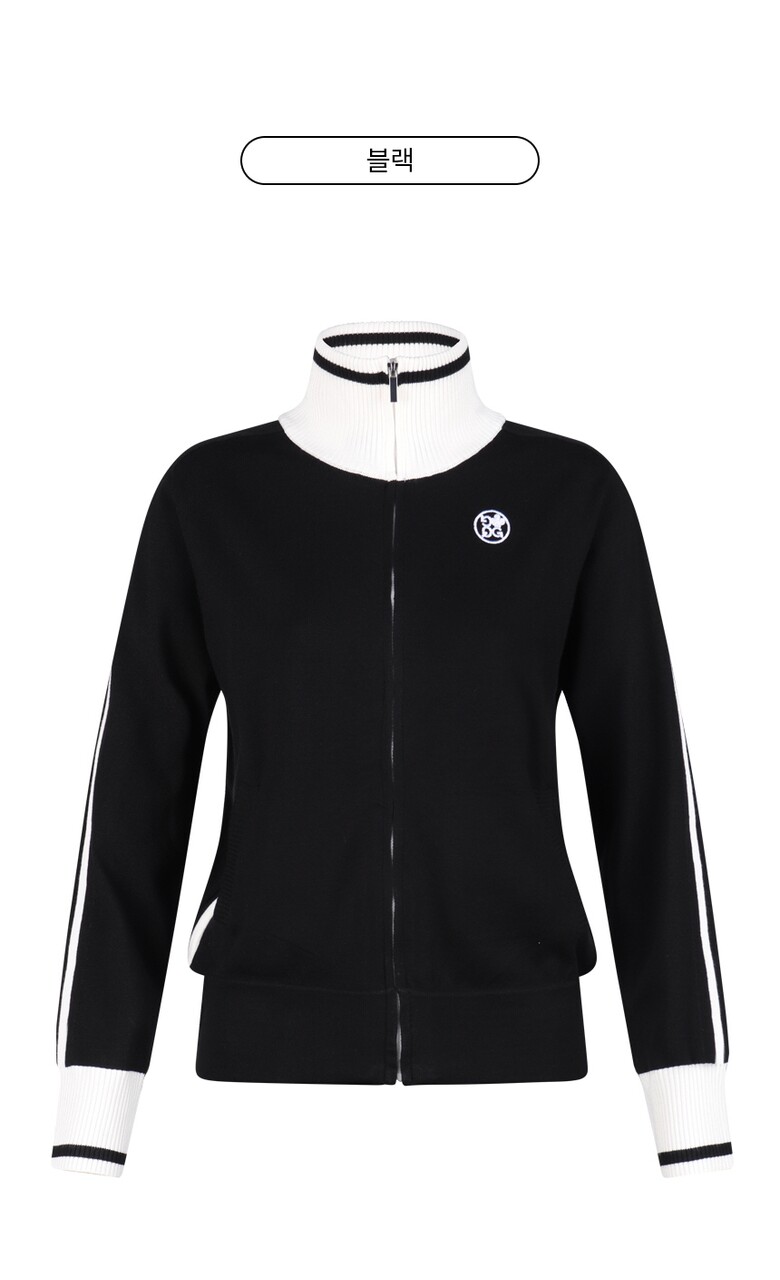 럭스골프 여성 하이넥 배색 집업 니트 가디건 GQ25S702W