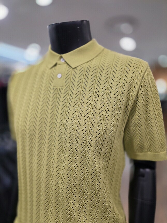 [바쏘옴므]WSY2-W T 20-AOV S/S 헤링본 타공 피케티셔츠 스타일 니트