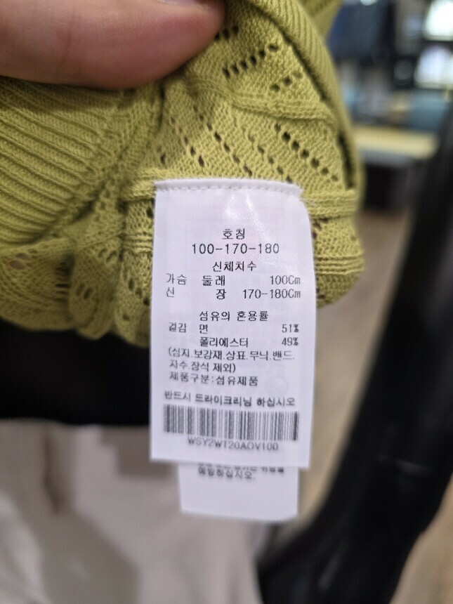 | 1. 제품 소재 (섬유의 조성 또는 혼용률을 백분율로 표시, 기능성인 경우 성적서 또는 허가서) | 겉감 : 면 51% , 폴리에스터 49% (심지,보강재,상표,무늬,밴드,자수, |
