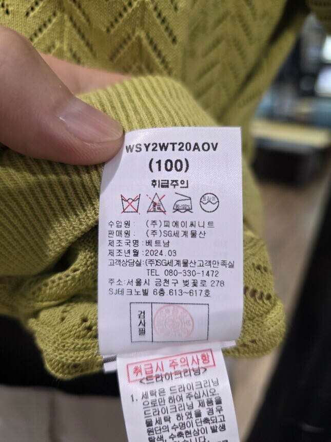 | 6. 세탁방법 및 취급시 주의사항 | 드라이크리닝 |