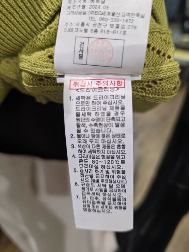 | 6. 세탁방법 및 취급시 주의사항 | 드라이크리닝 |