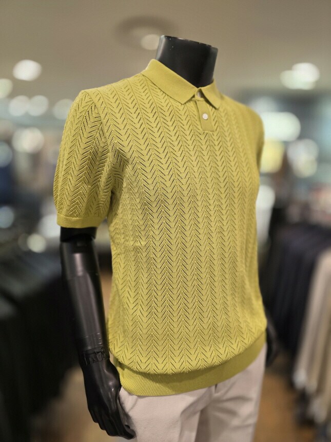 [바쏘옴므]WSY2-W T 20-AOV S/S 헤링본 타공 피케티셔츠 스타일 니트