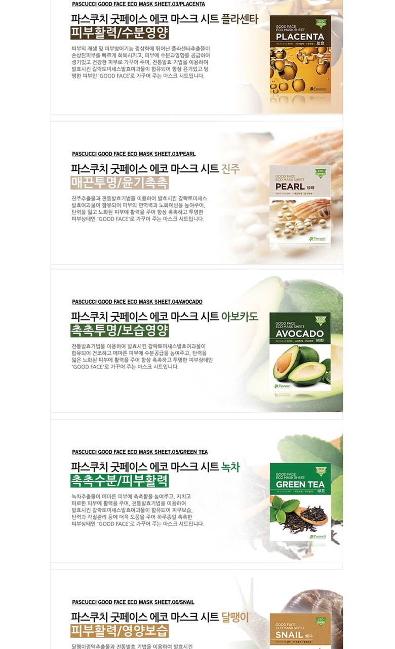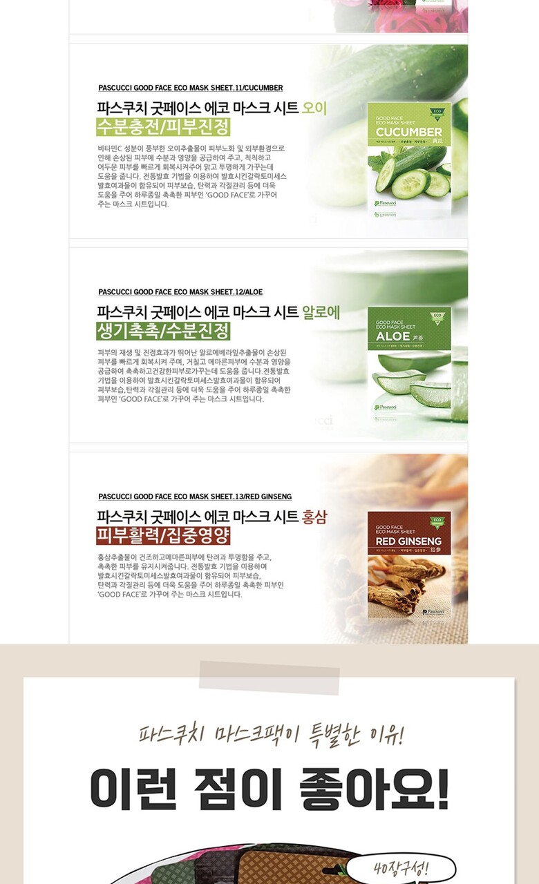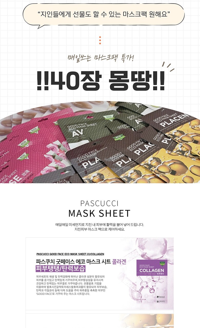 [40장] 파스쿠치 굿페이스 마스크팩 23ml*40매 특가