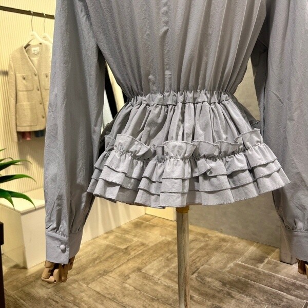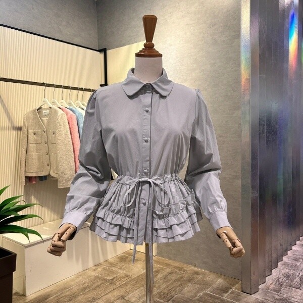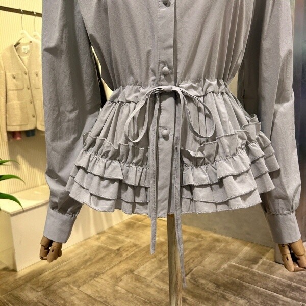 AOZ1HB01C_스트랩 프릴 이중단 블라우스