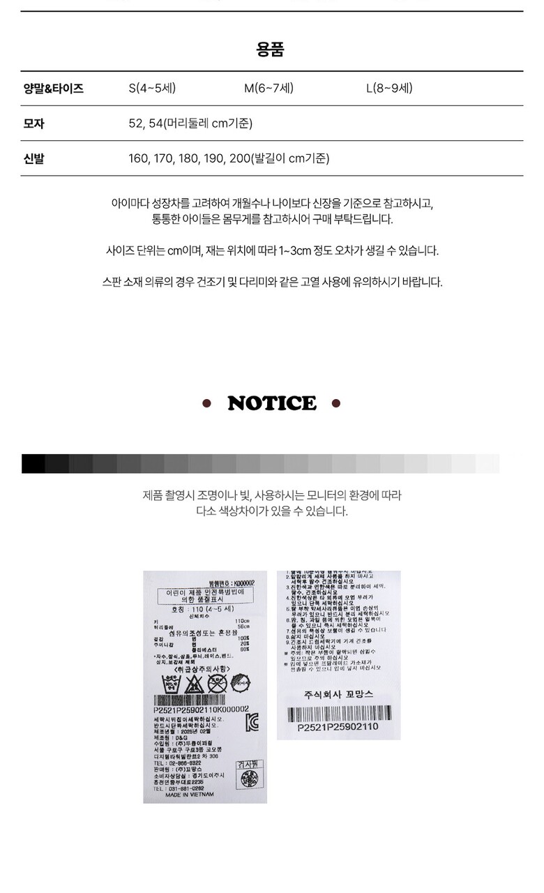 | 6. 세탁방법 및 취급시 주의사항 | 상품상세참조 |