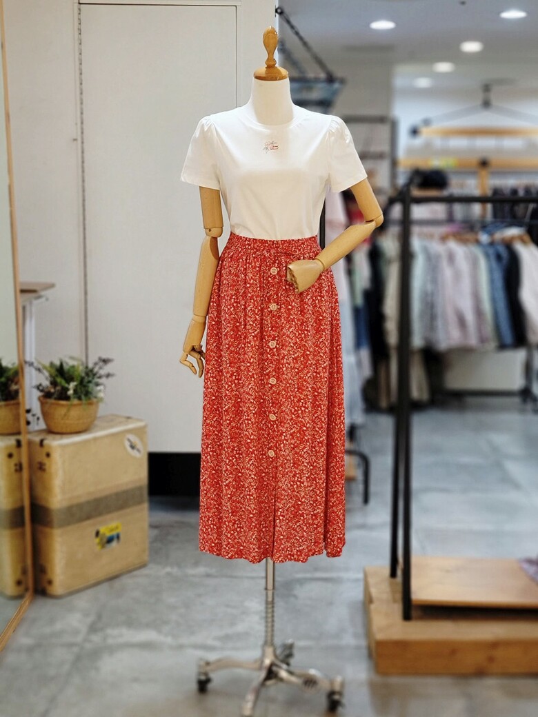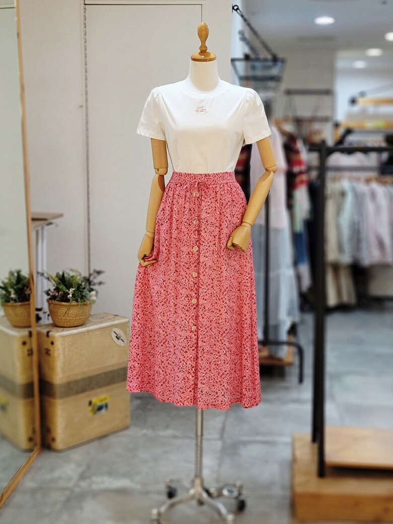 플라워 패턴 밴딩 롱 스커트 T244MSK234W
